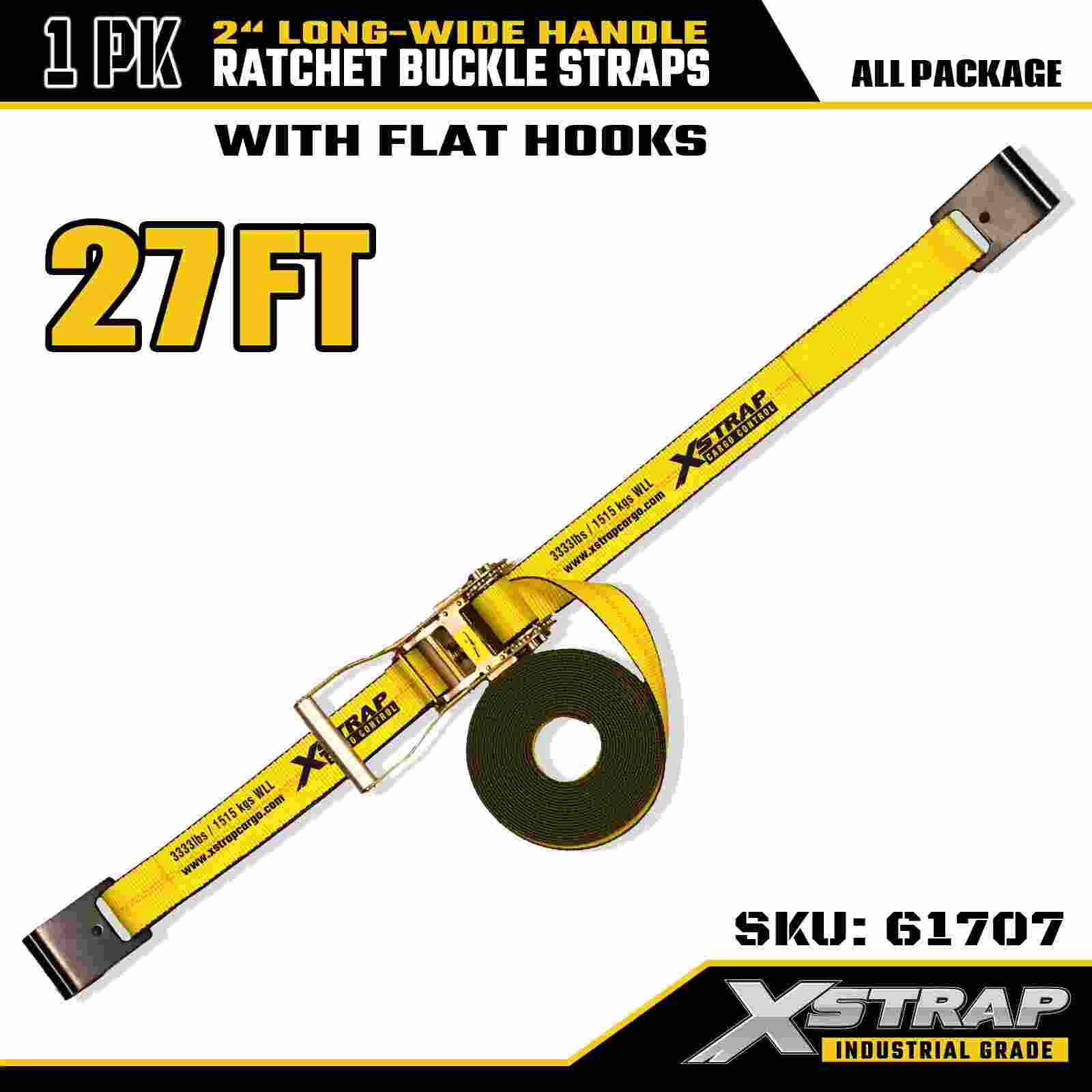 Xstrap 61707 Lange Ratschengurte mit breitem Griff, 5,1 cm x 7,9 m (1er-Pack) – Flache Haken, 4.500 kg Bruchfestigkeit, robuster Spanngurt für sicheren Transport