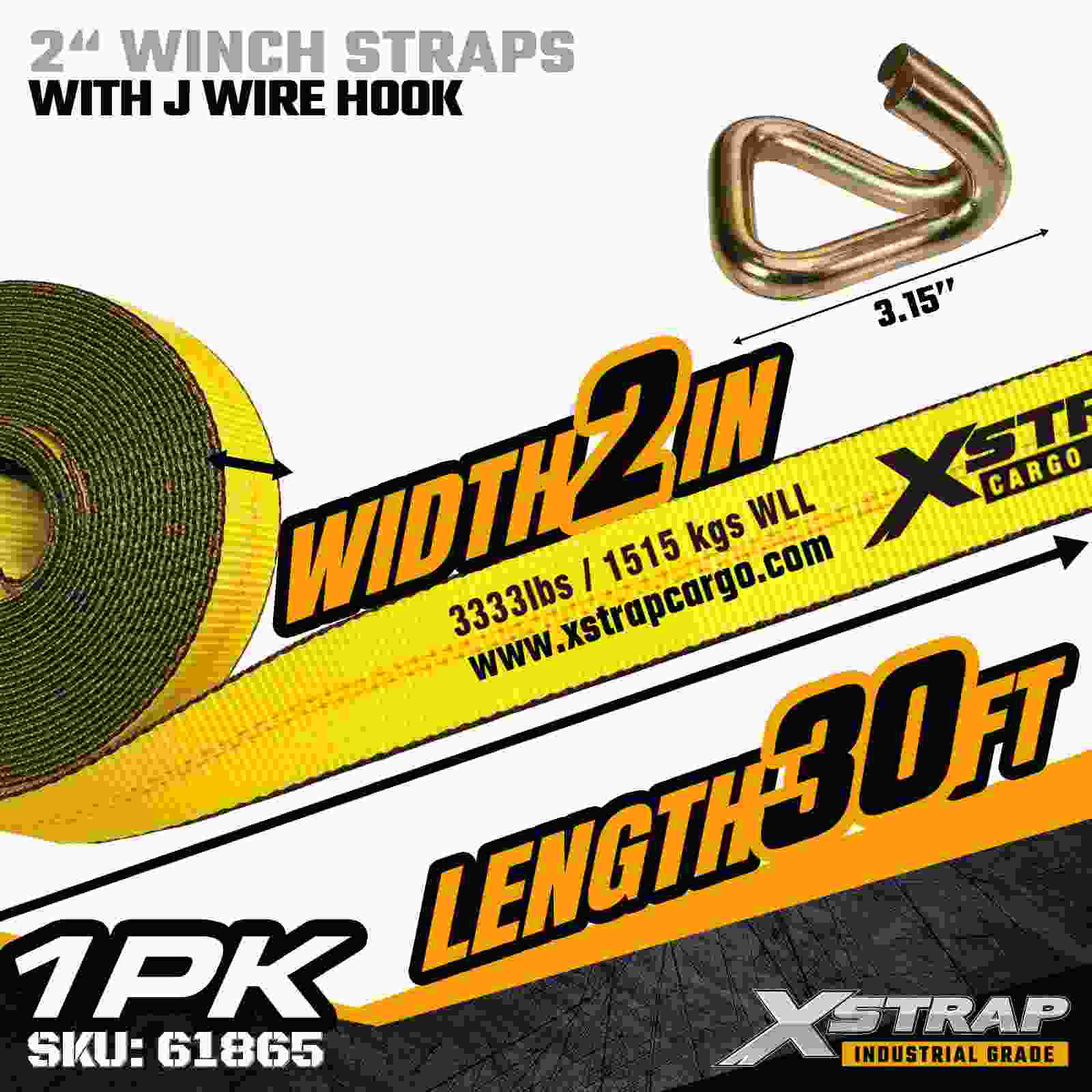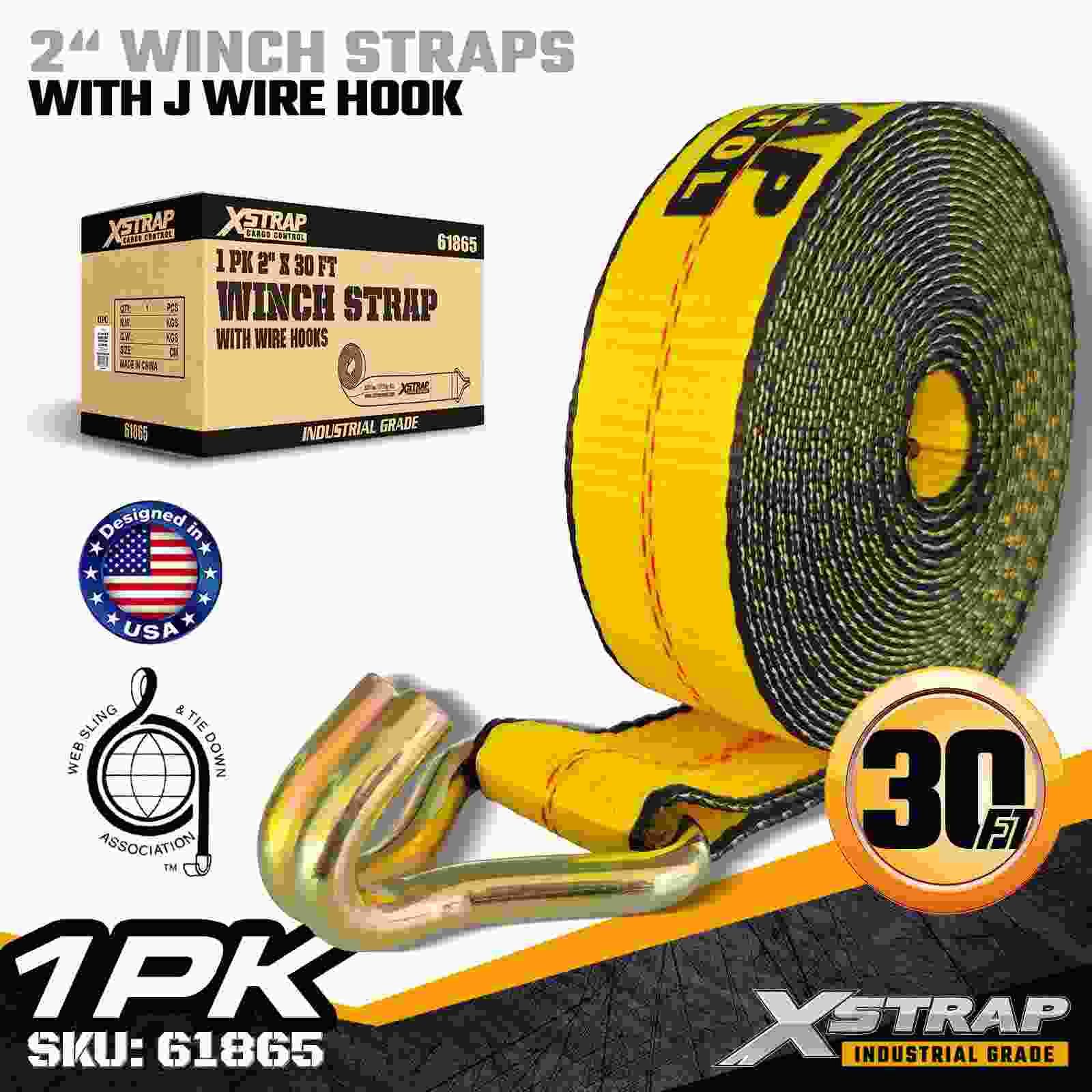 2" × 30ft Standard-Windengurt mit Drahthaken