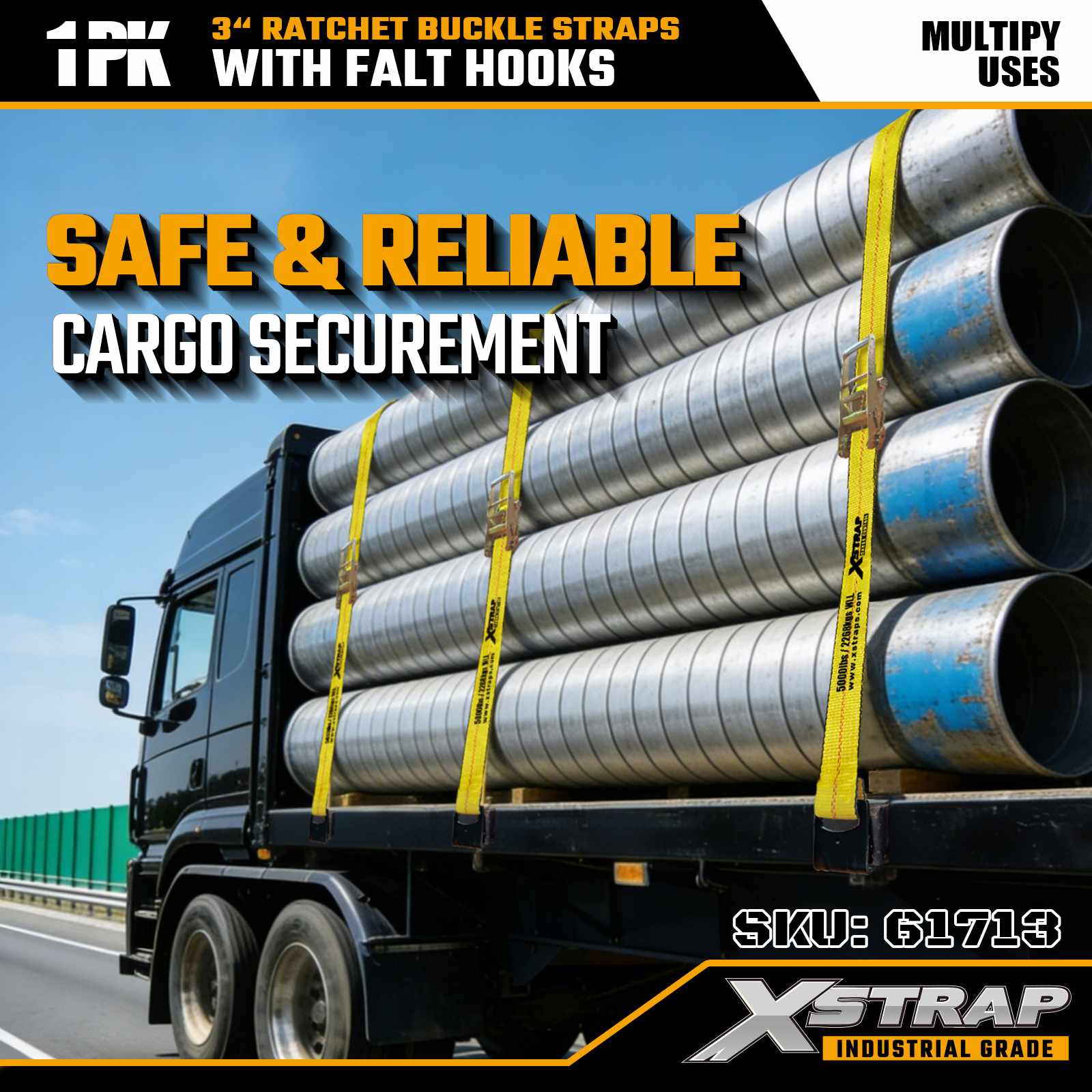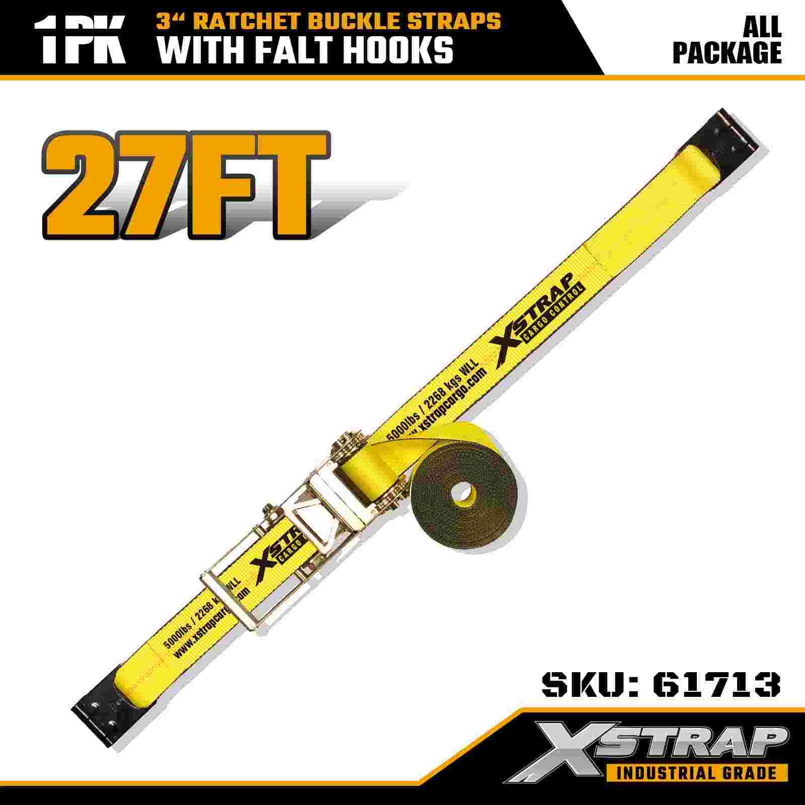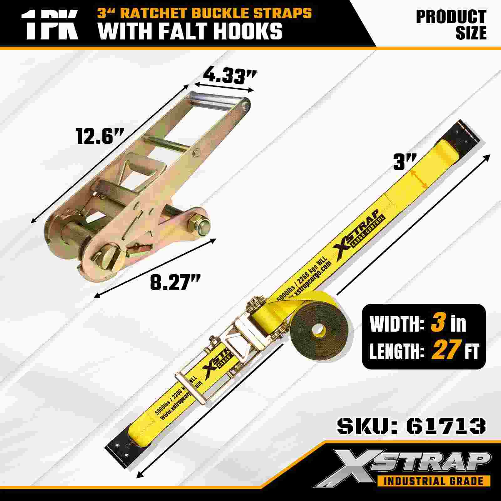 Xstrap 61713 3" x 27ft Ratschenschnallengurte (1er-Pack) flache Haken, 5.000 Pfund Tragkraft, 15.000 Pfund Bruchfestigkeit, robuste Zurrgurte für LKWs, Anhänger und industriellen Gütertransport.