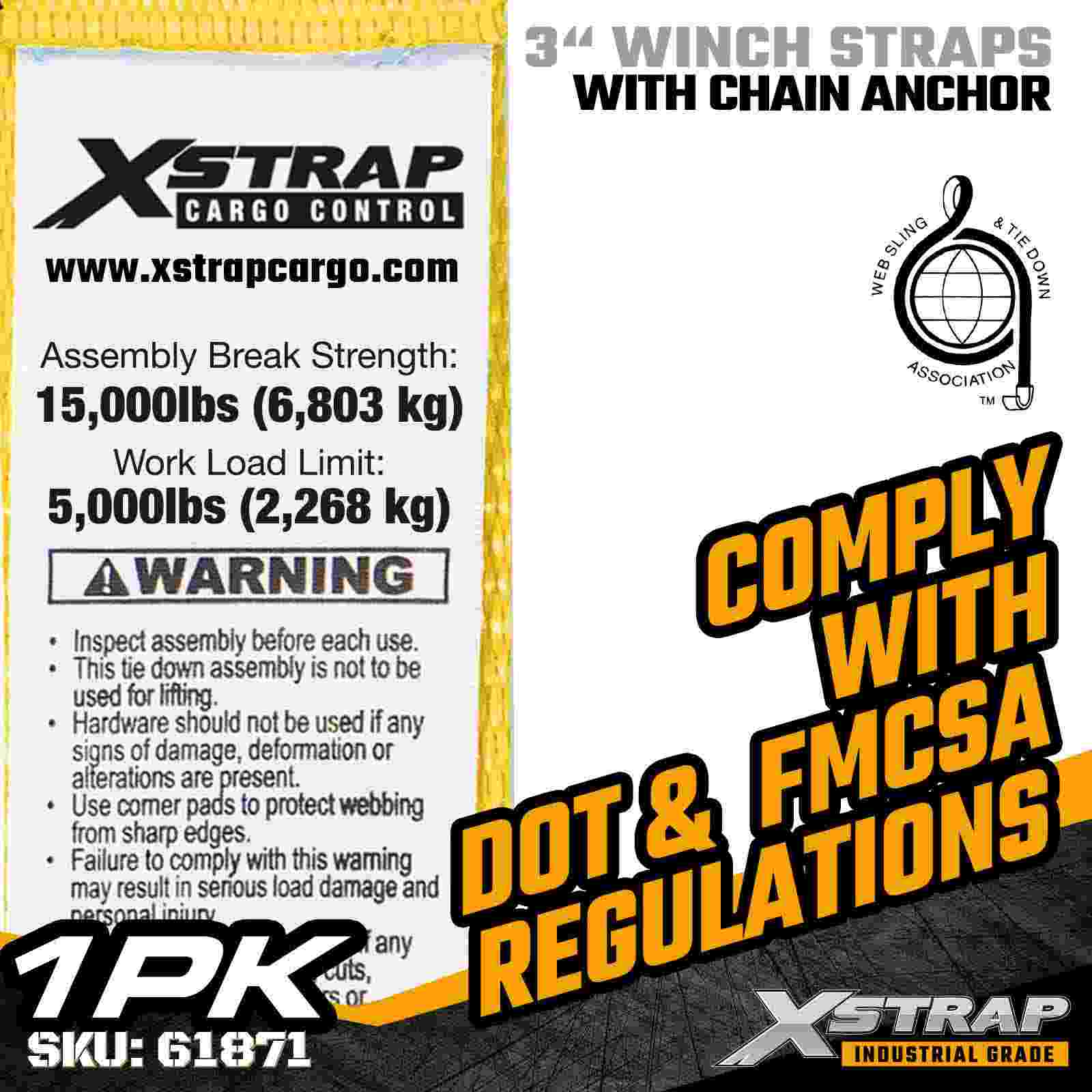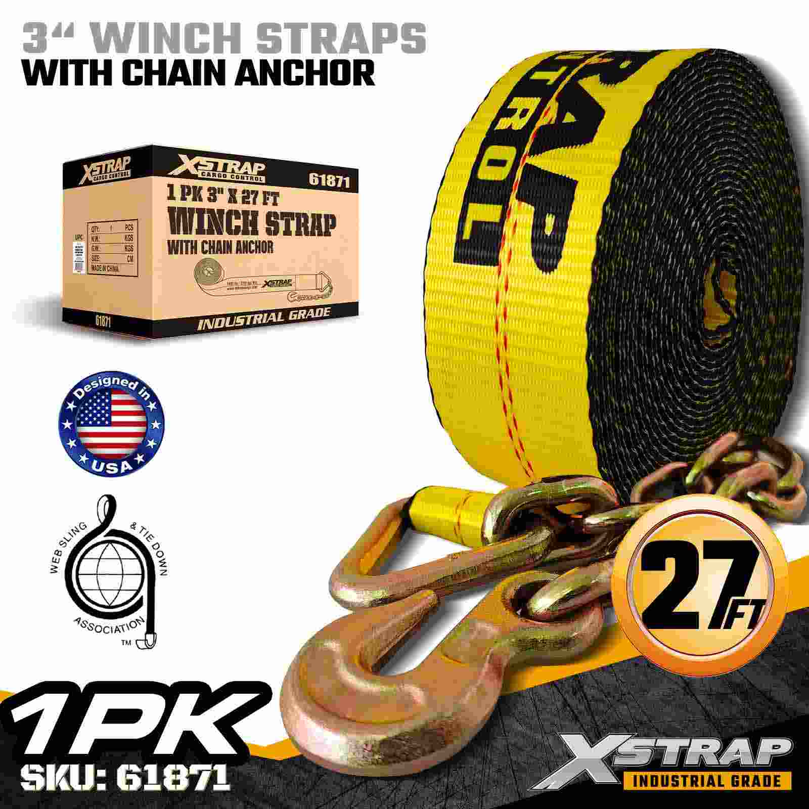 3" × 27ft Standard-Windengurt mit Kettenanker