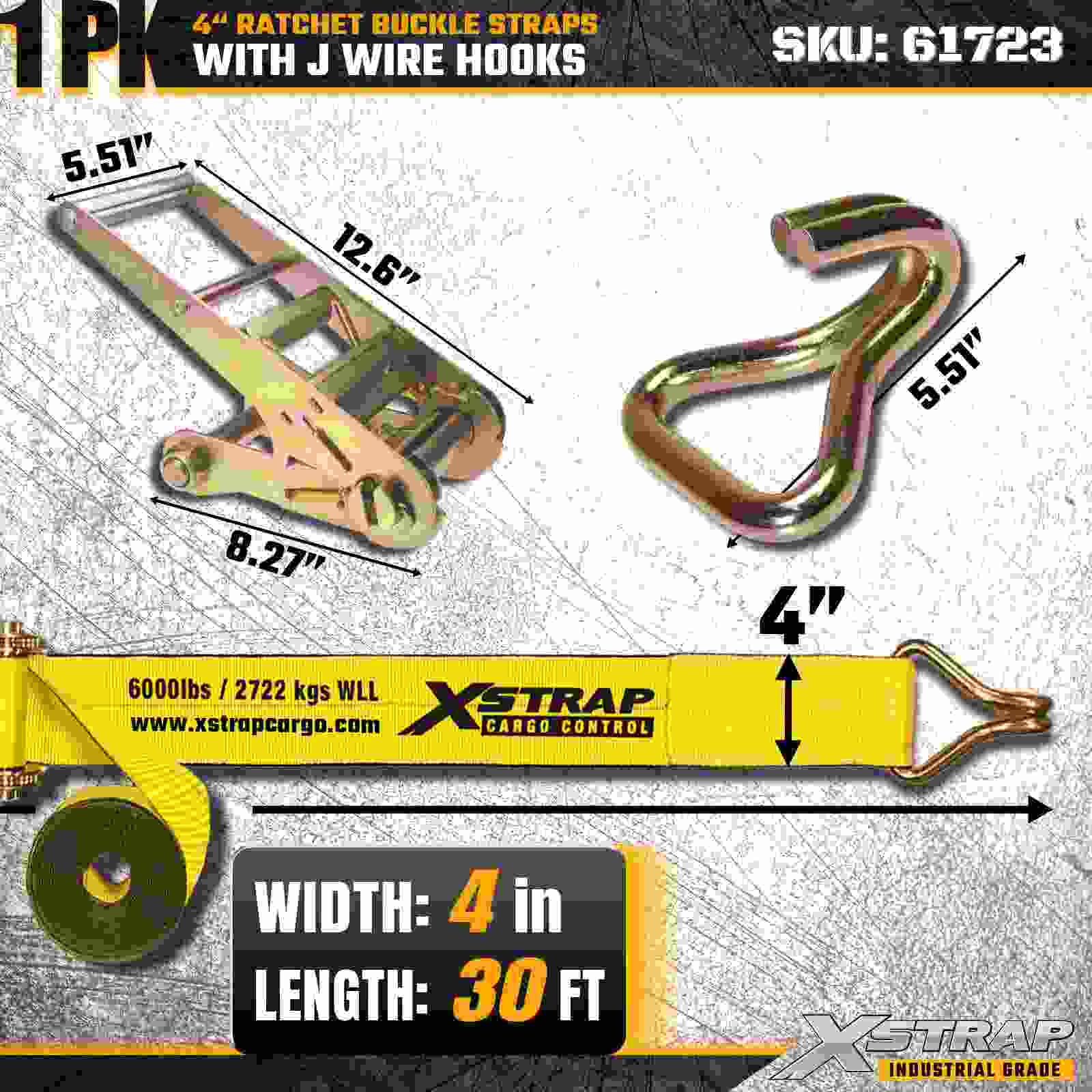 4" × 30ft Ratschenschnallengurt mit Drahthaken