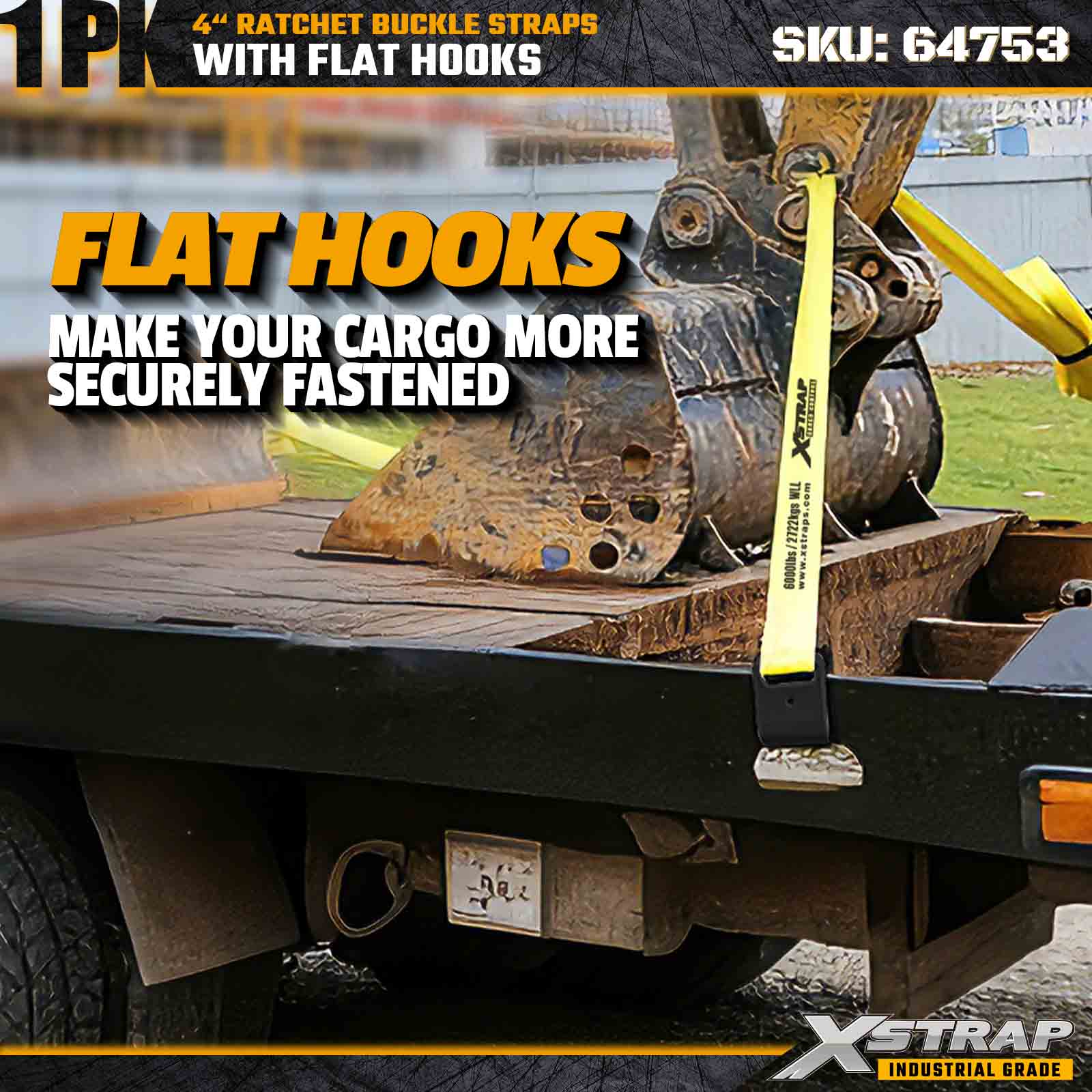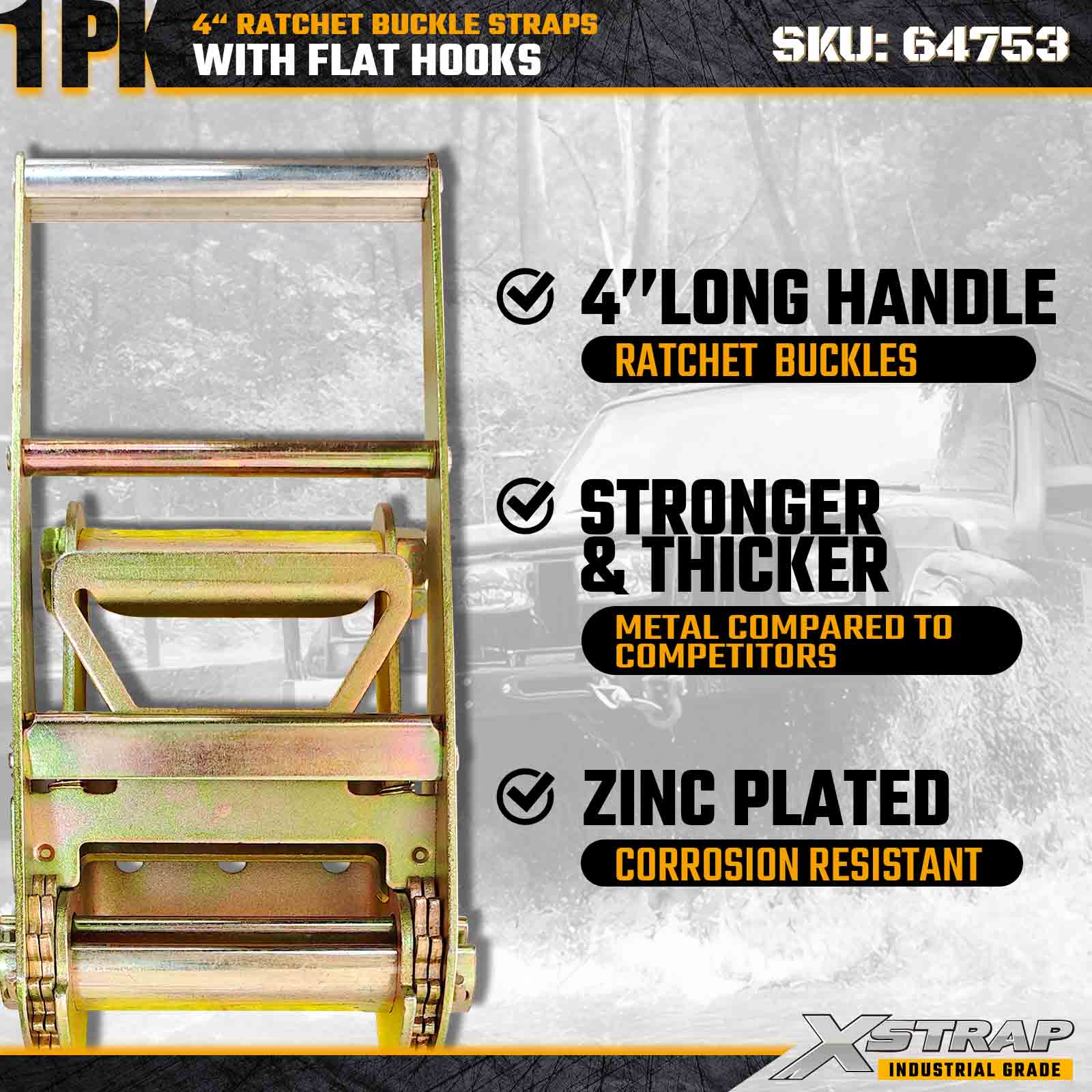 4" × 40ft Ratschenschnallengurt mit flachen Haken
