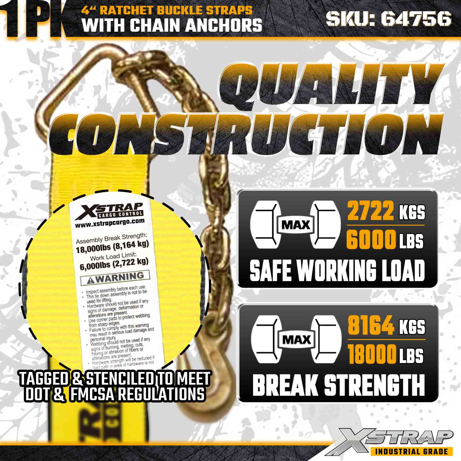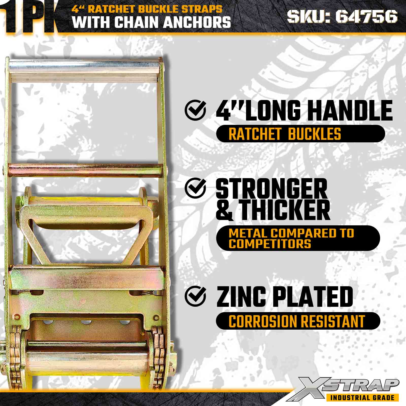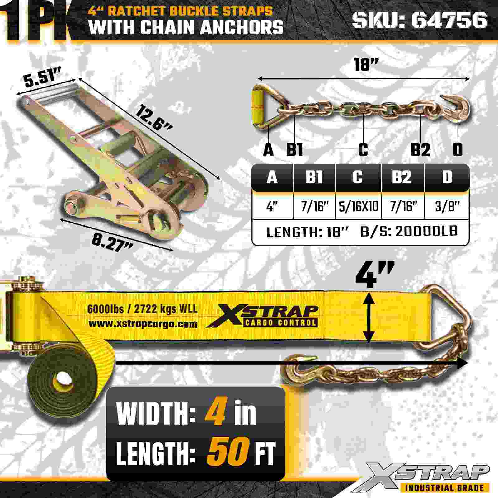 Xstrap 64756 4" × 50 Fuß Ratschenschnallengurt mit Kettenankern, Bruchfestigkeit 18.000 lbs (1er-Pack)