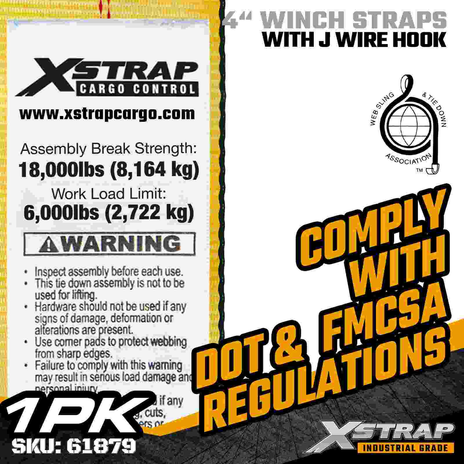Der Xstrap 61879 4" × 27 Fuß Standard-Windengurt ist ein robuster, flexibel verankernder Ladungssicherungsgurt für Tieflader und Industrietransporte. Mit einem verstärkten Drahthaken und einem extrem breiten 4-Zoll-Polyestergurtband bietet dieser 4-Zoll-Windengurt eine Arbeitslast von 6.000 Pfund und eine Bruchfestigkeit von 18.000 Pfund. Das Drahthakendesign bietet vielseitige Befestigungsmöglichkeiten und ist somit ideal für Bediener, die dies benötigen schnelle, anpassungsfähige Anschlusspunkte für verschiedene Frachtarten.