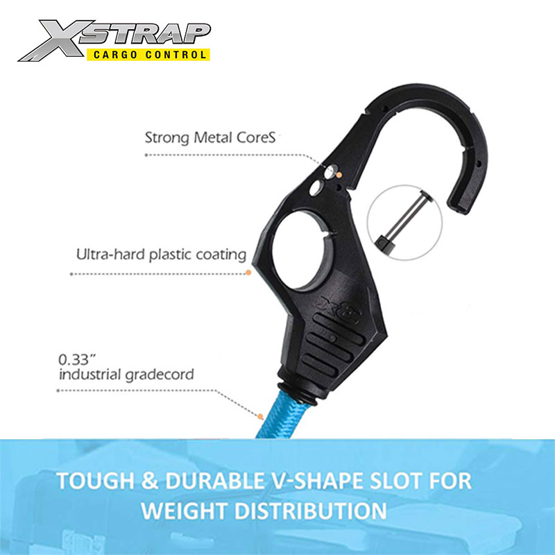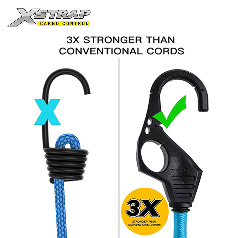 Mittlerweile sind die Haken dreimal stärker als die gewöhnlichen Bungee-Cord-Haken. Daher ist es nicht leicht zu brechen. Es ist sicherer als andere Bungee-Seile.