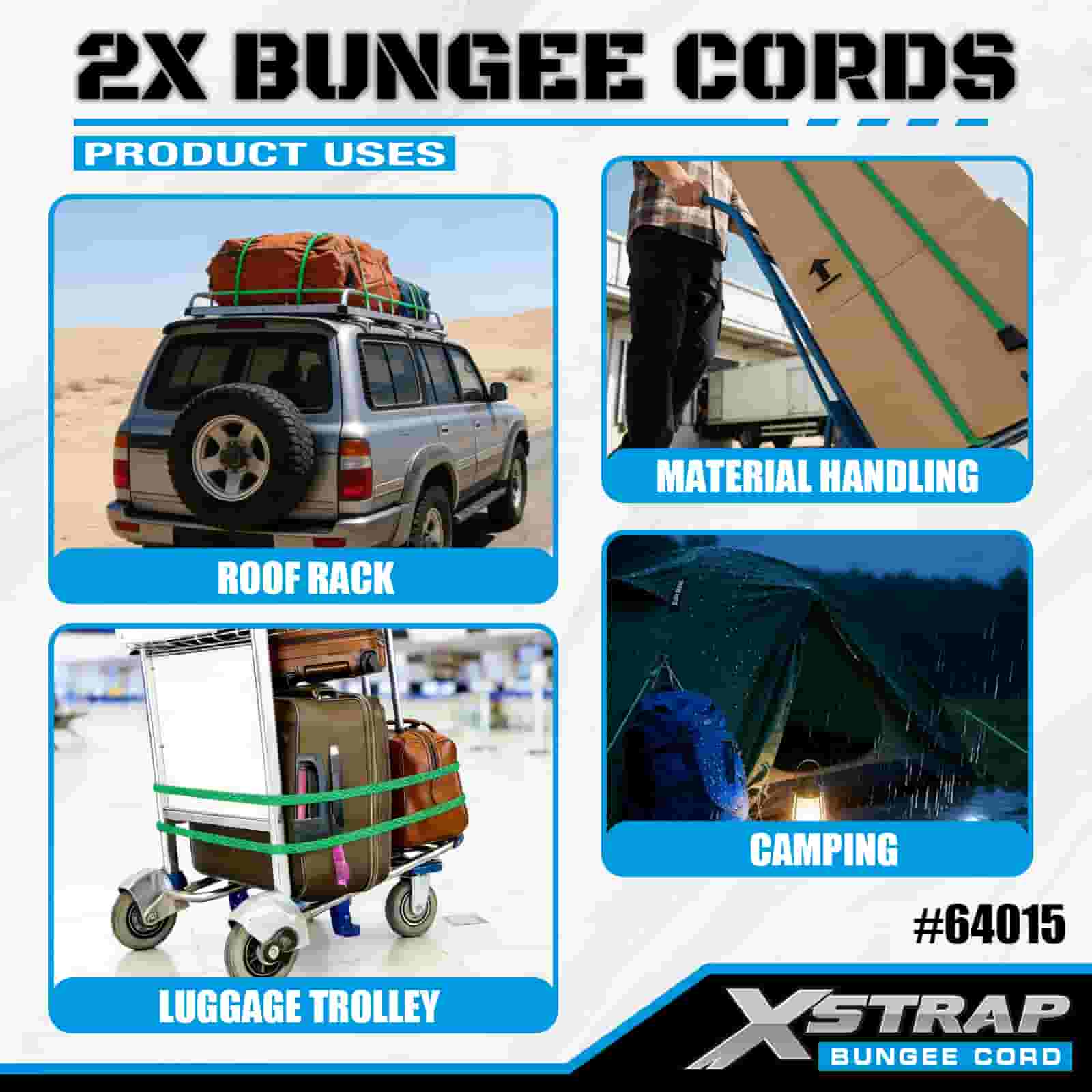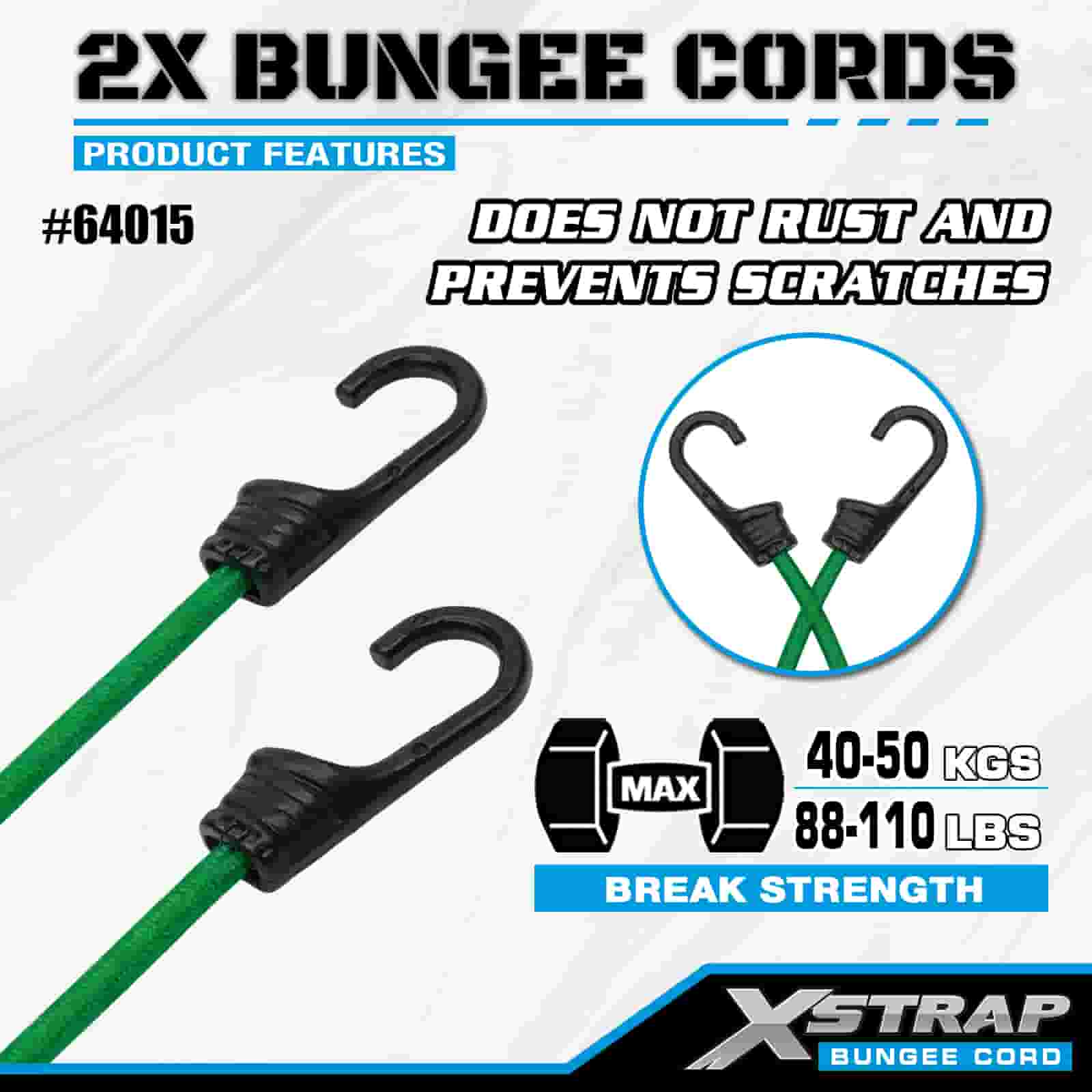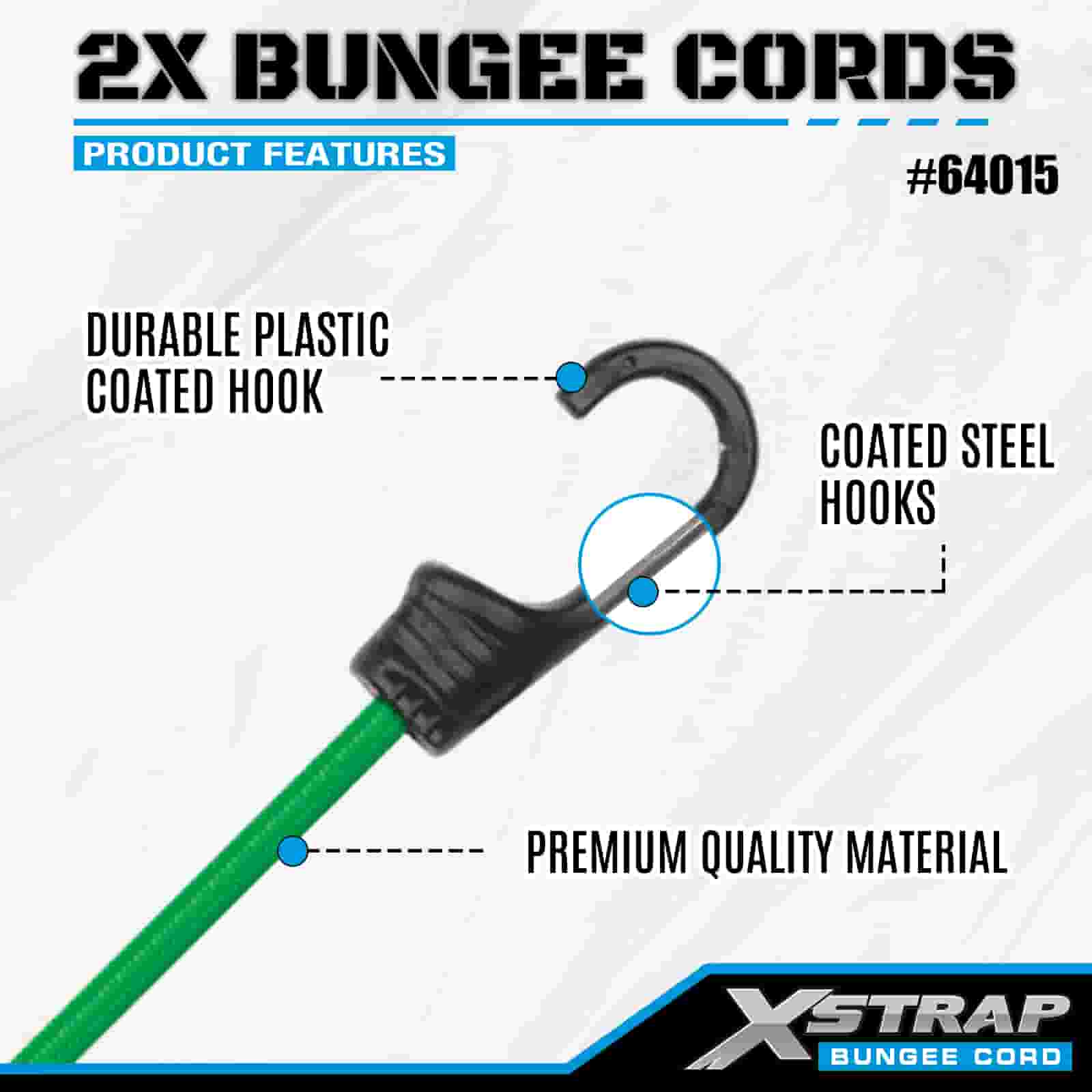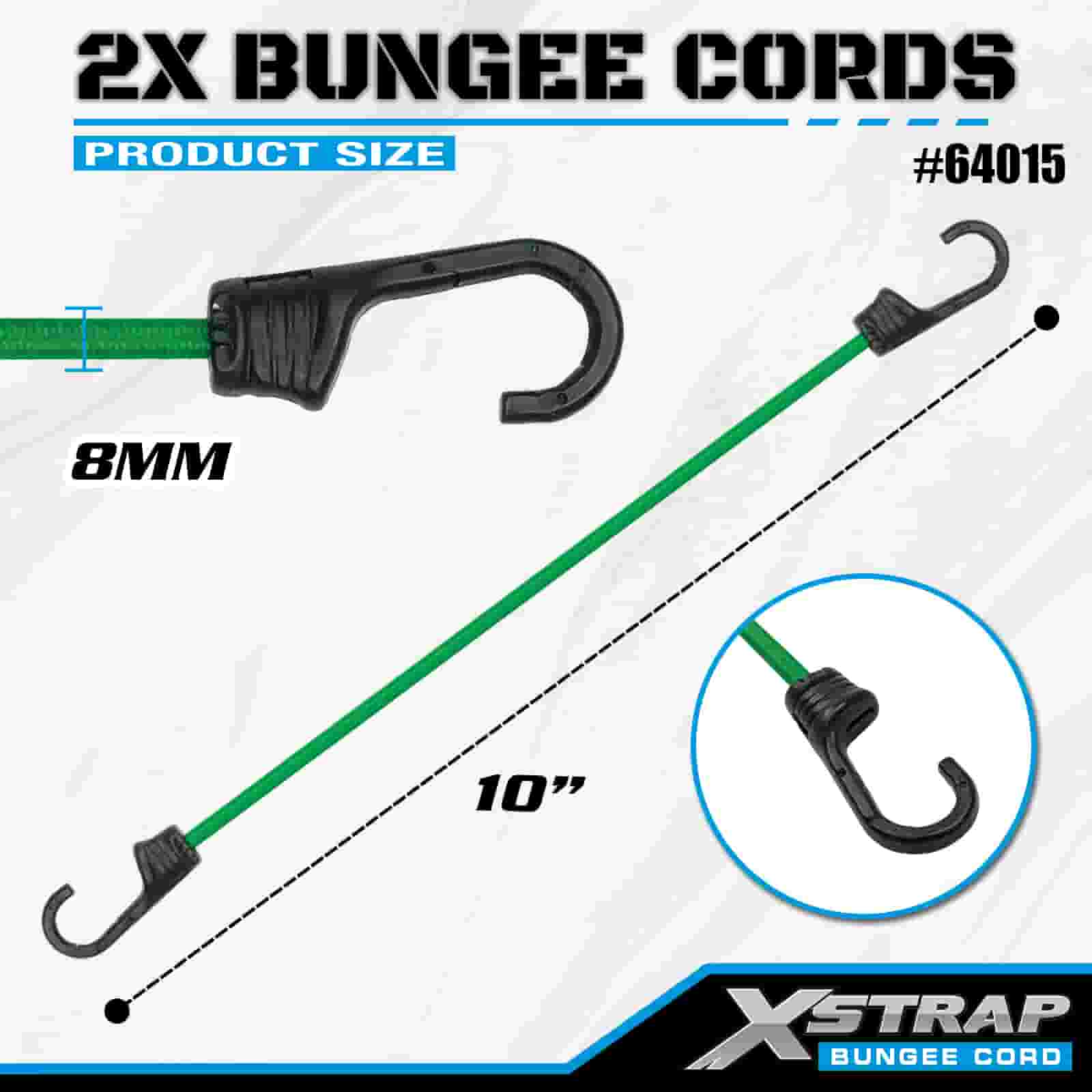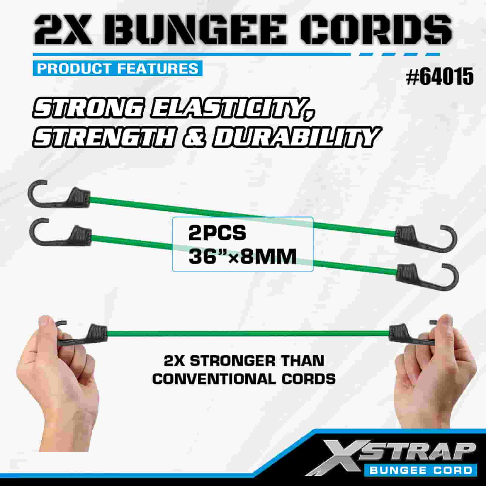 Xstrap 2PK 2X Bungee-Seile 8 mm x 36 Zoll, 88-110 Pfund Bruchfestigkeit mit starken Haken zur Ladungskontrolle.