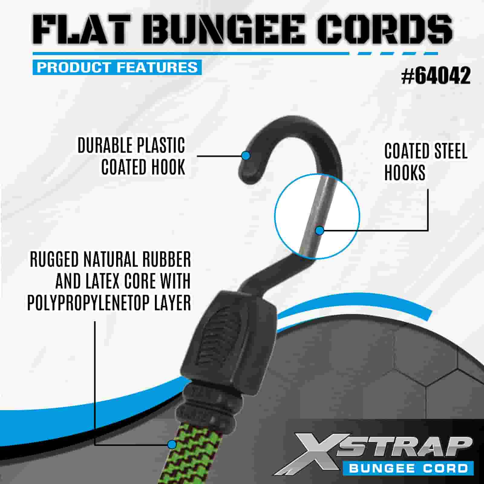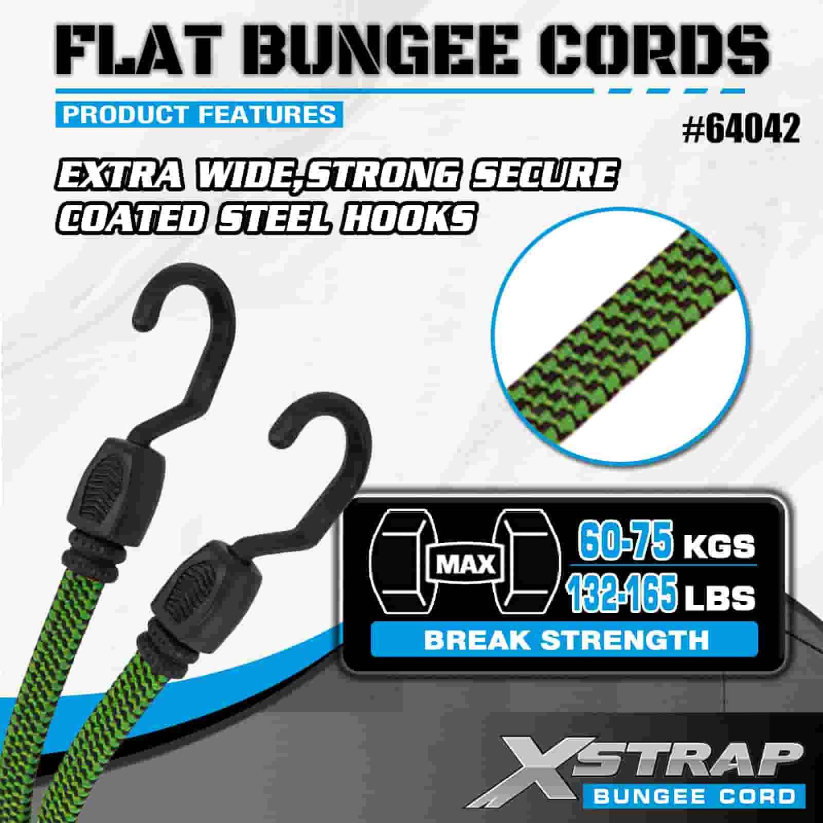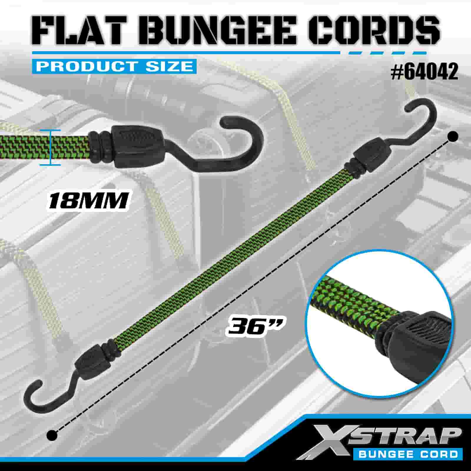 Xstrap 2PK flache Bungee-Seile 18 mm x 36 Zoll, 132–165 lbs Bruchfestigkeit mit starken Haken zur Ladungskontrolle .