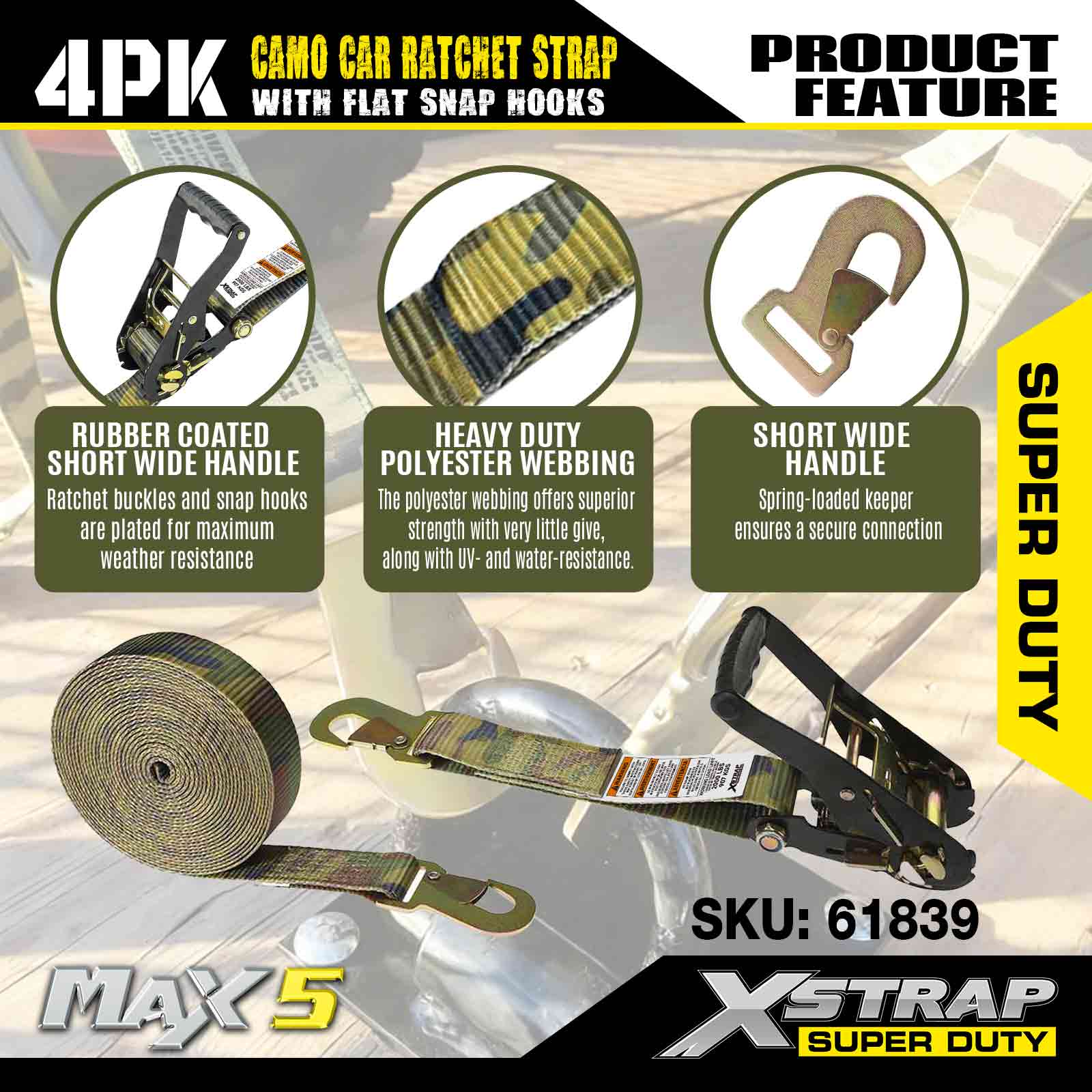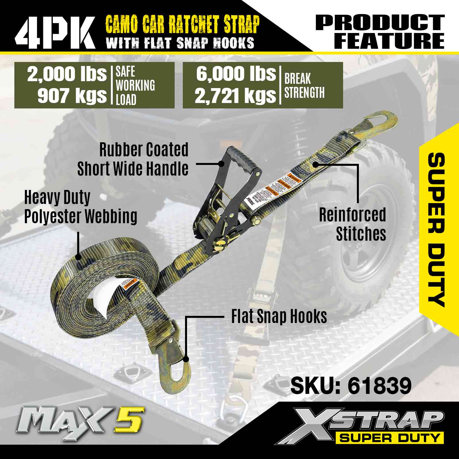 - 4ER-PACK ZURÜCKSETZEN – Diese 2 x 7-Ratschengurte werden in einer 4er-Packung geliefert. Das bedeutet, dass Sie 4 hochwertige Kfz-Ratschengurte erhalten, die Ihnen bei weiteren Anwendungen wie dem Festzurren von Motorrädern, Geländefahrzeugen, anderen Kraftfahrzeugen und mehr helfen.