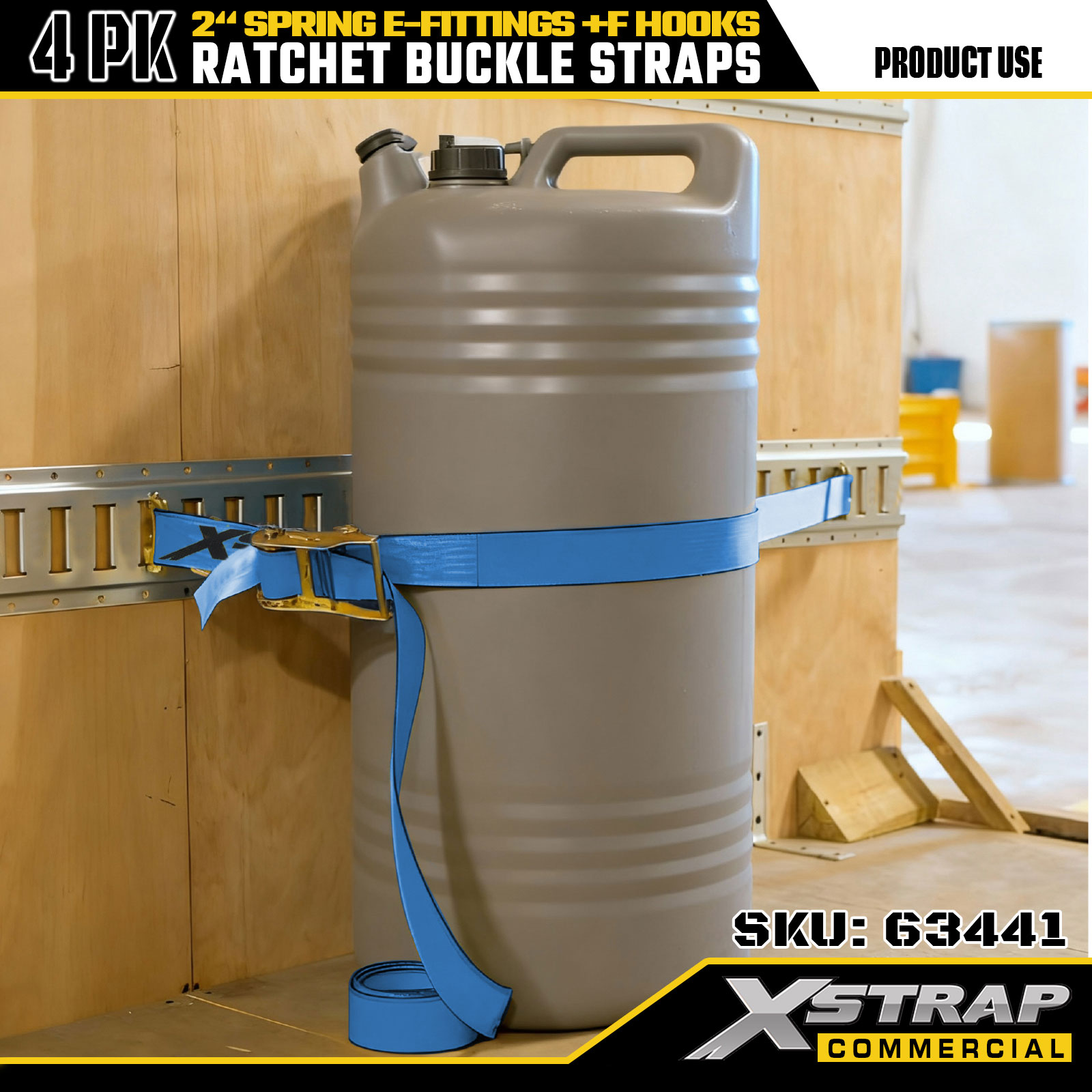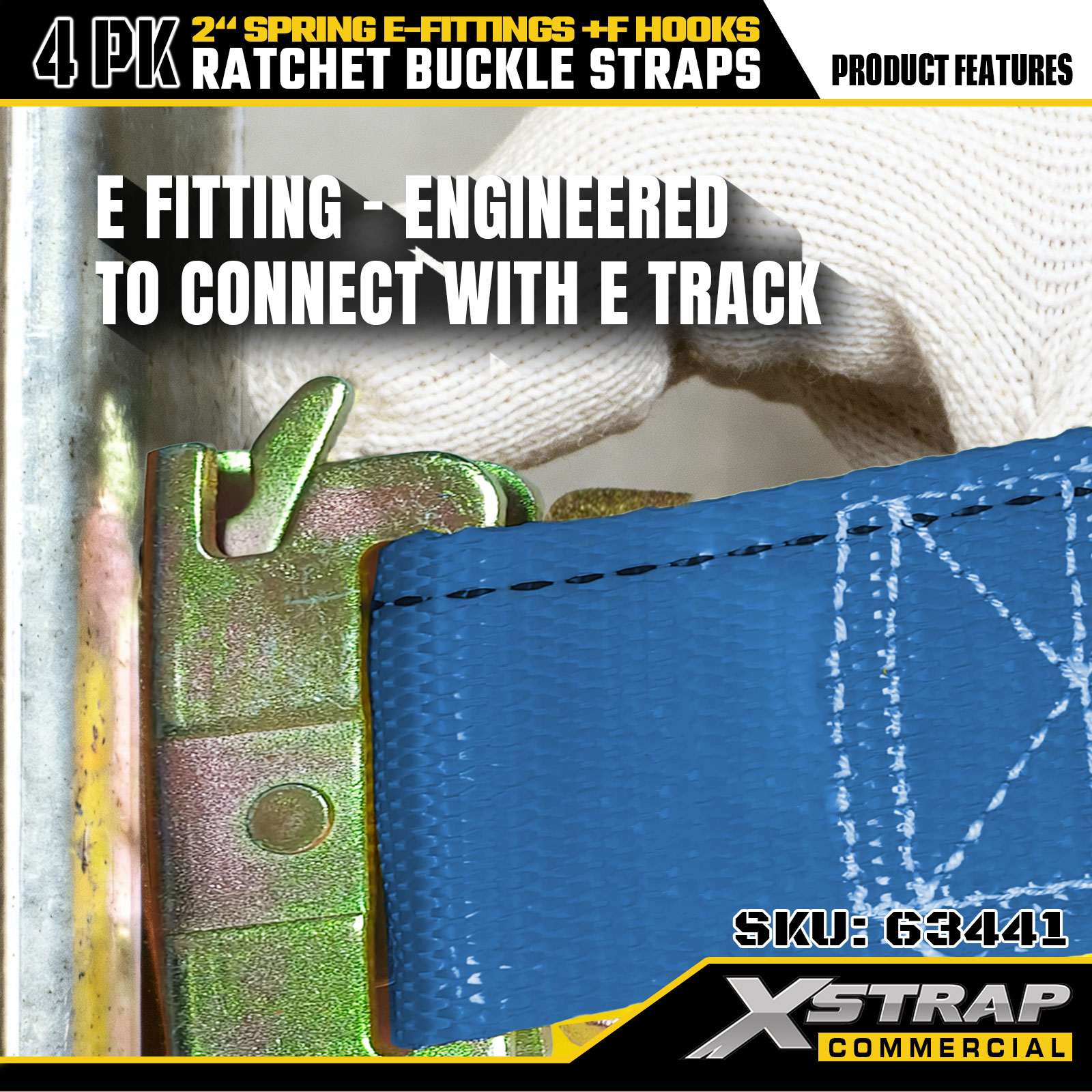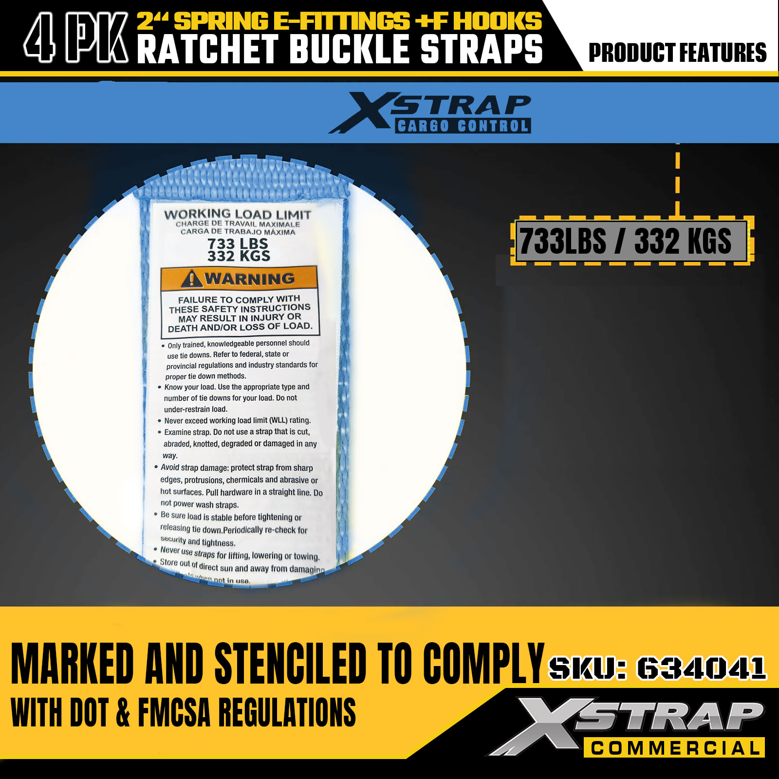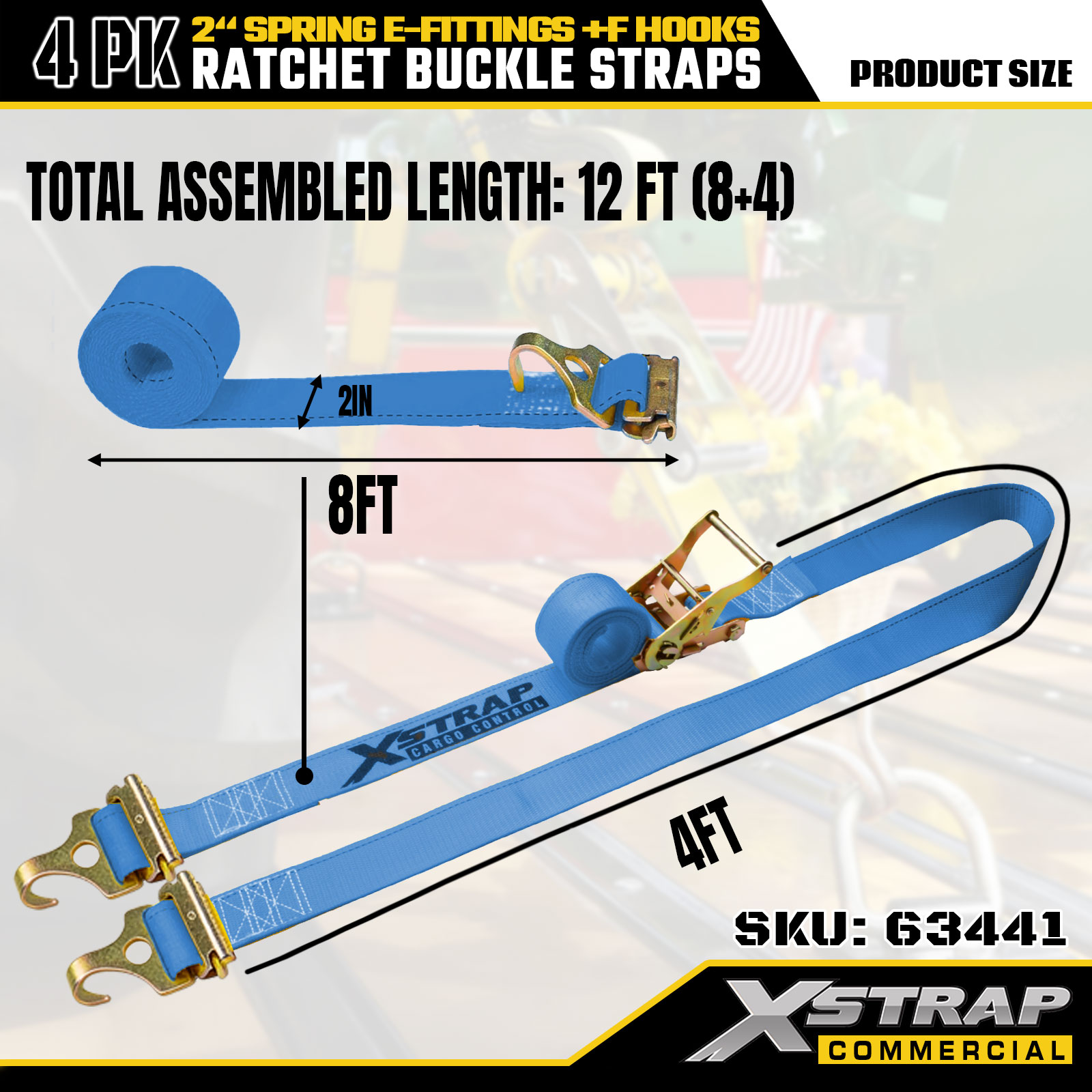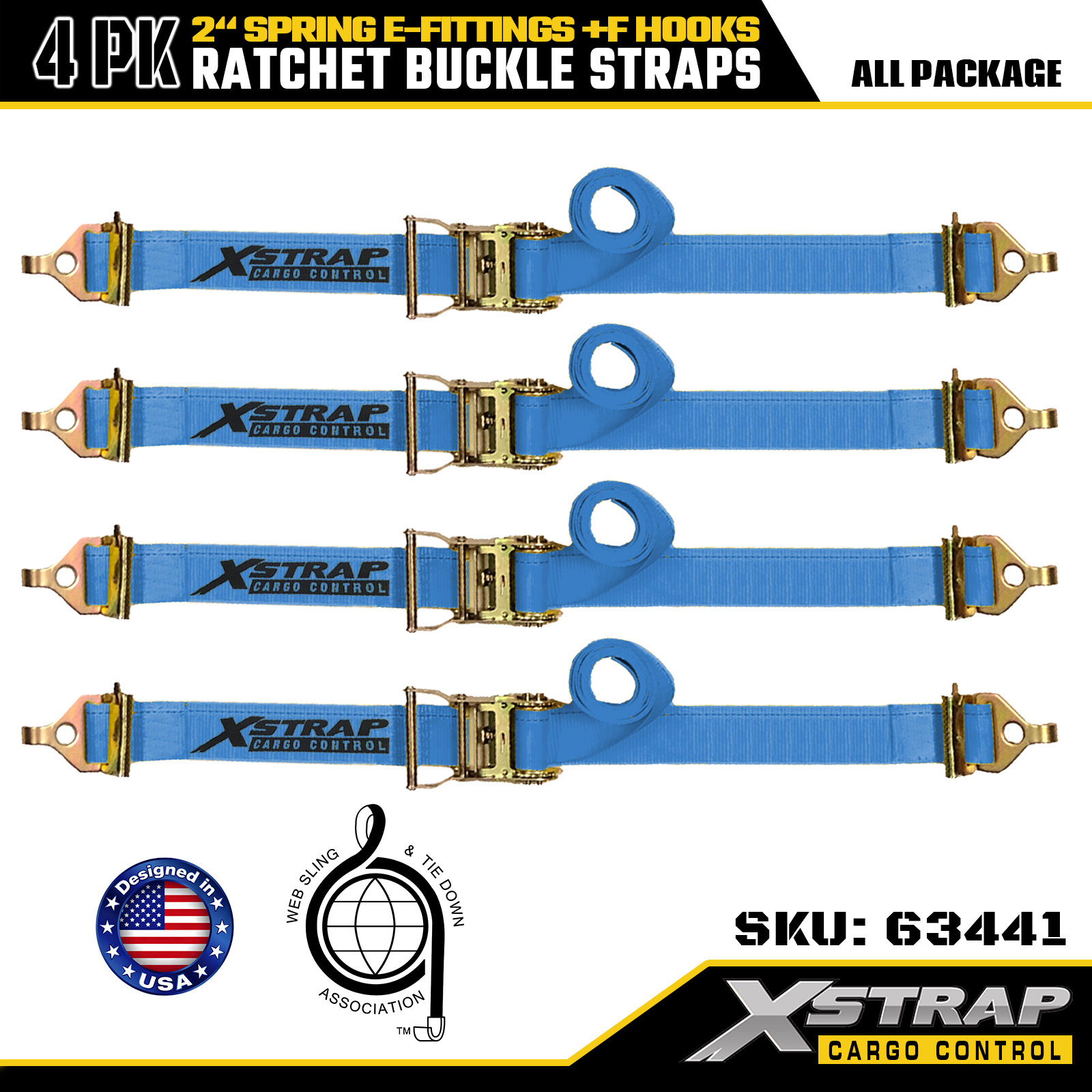 Xstrap 4er-Pack Ratschen-Spanngurte, 5,1 cm x 30,5 cm, Polyester mit Feder-E-Anschlüssen und F-Haken, 733 lbs SWL und 332 lbs Bruchfestigkeit für LKW, Umzug, Stückguttransport