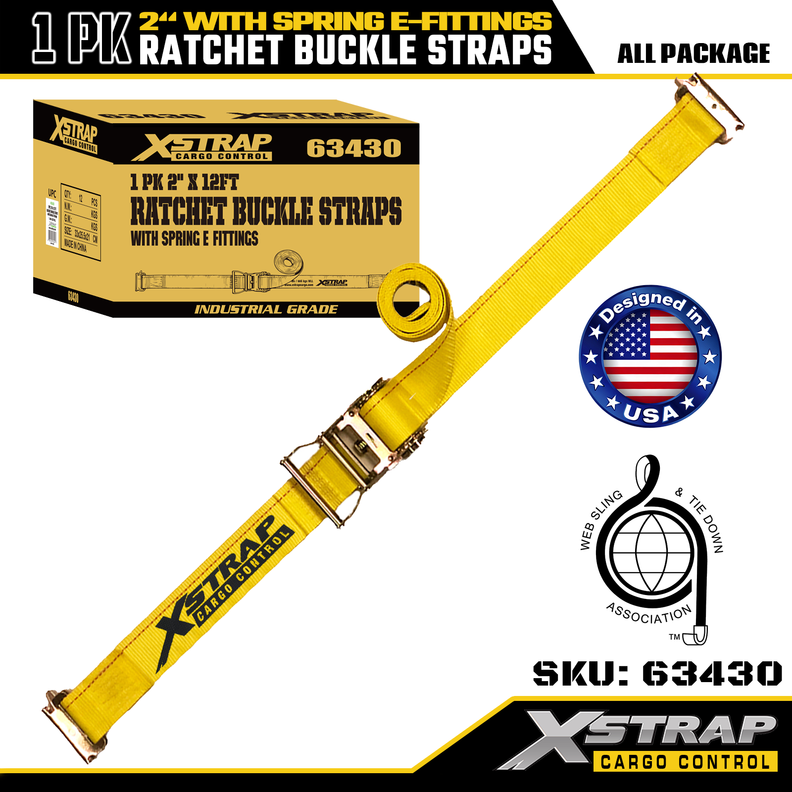2" x 12' 1PK Riemen mit Ratschenschnalle und Feder-E-Beschlägen