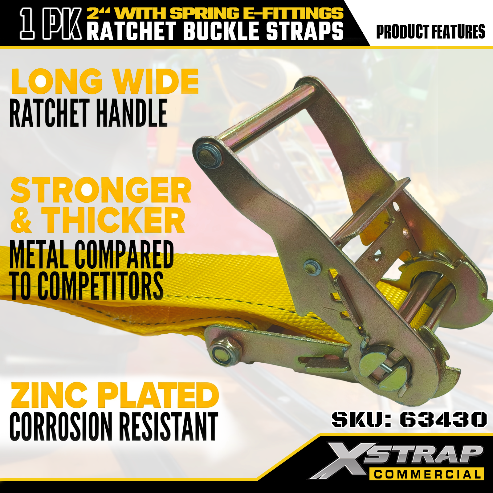 Xstrap 1 Packung Ratschen-Zurrgurte aus Polyester mit Feder-E-Anschlüssen, 5,1 cm x 30,5 cm, strapazierfähige Ladungssicherungsgurte, 4401 lbs (1467 lbs) Kapazität für LKW, Mäher, Geländefahrzeuge