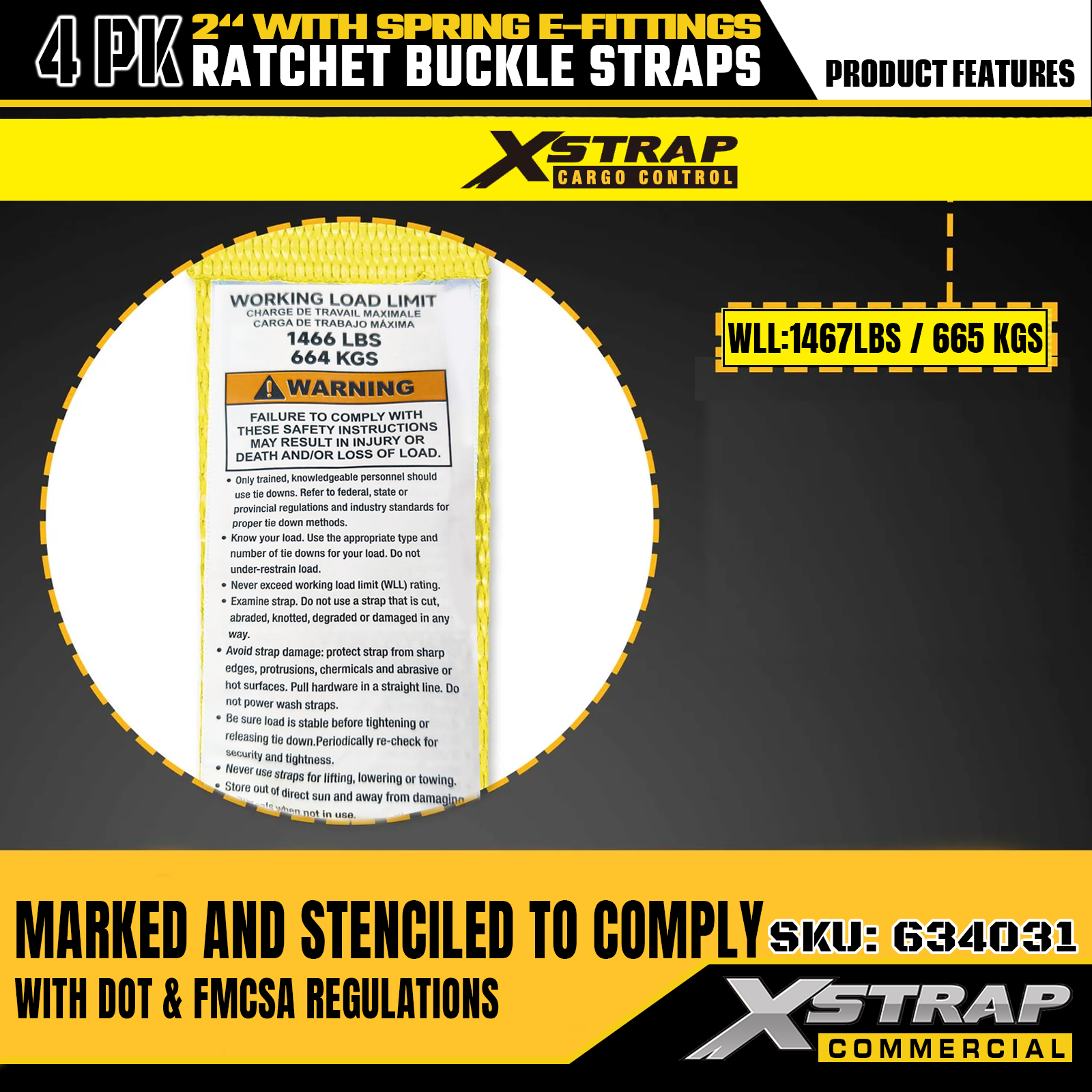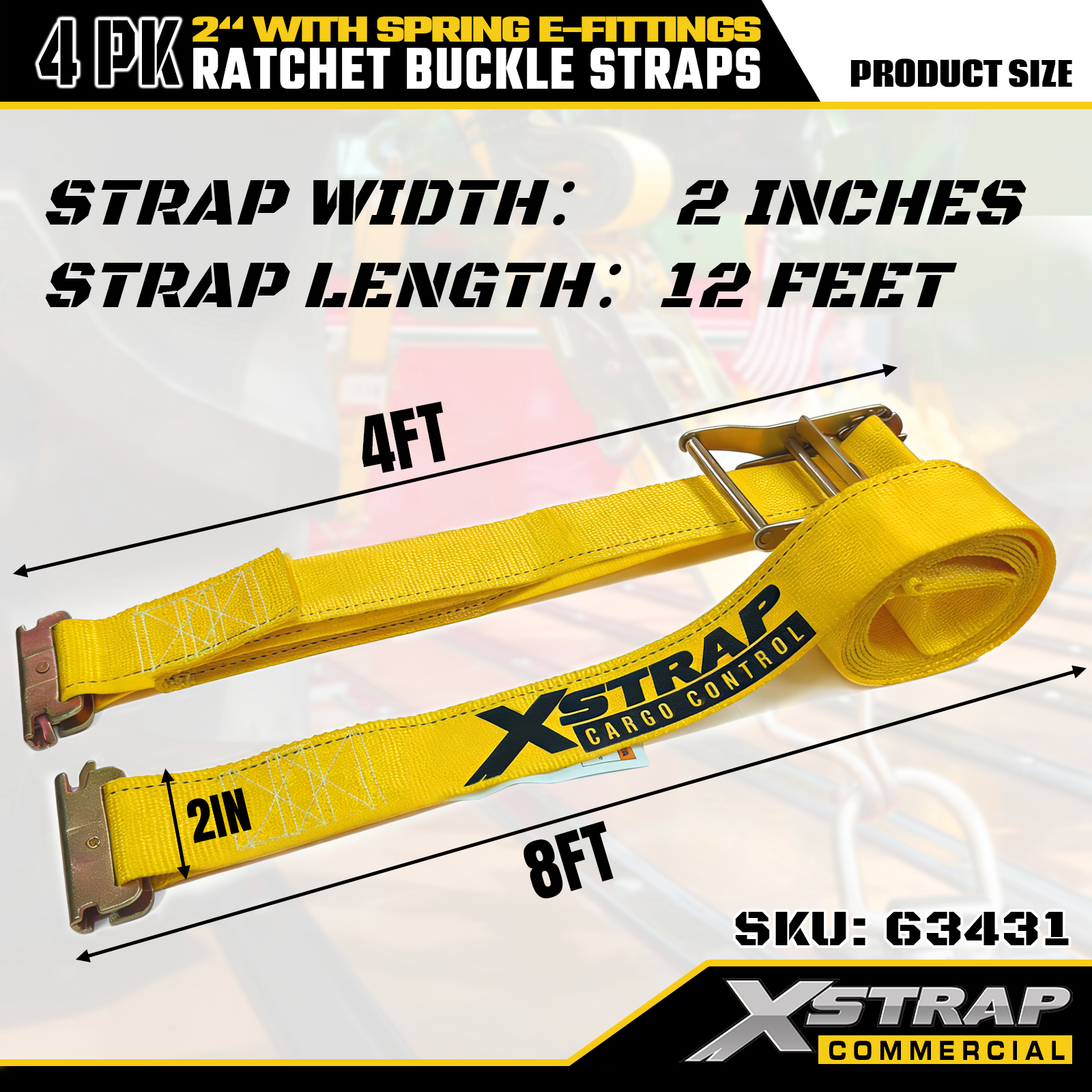 Xstrap 4er-Pack Ratschen-Spanngurte, 2" x 12' Polyester-Ladungssicherungsgurte, 1467 lbs sichere Arbeitslast und 4401 lbs Bruchfestigkeit, mit Metallhaken für LKW, Mäher, Geländefahrzeuge