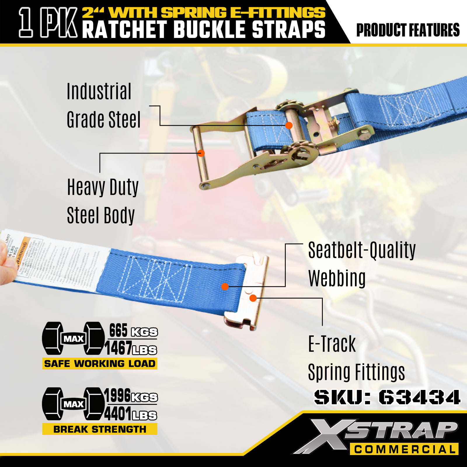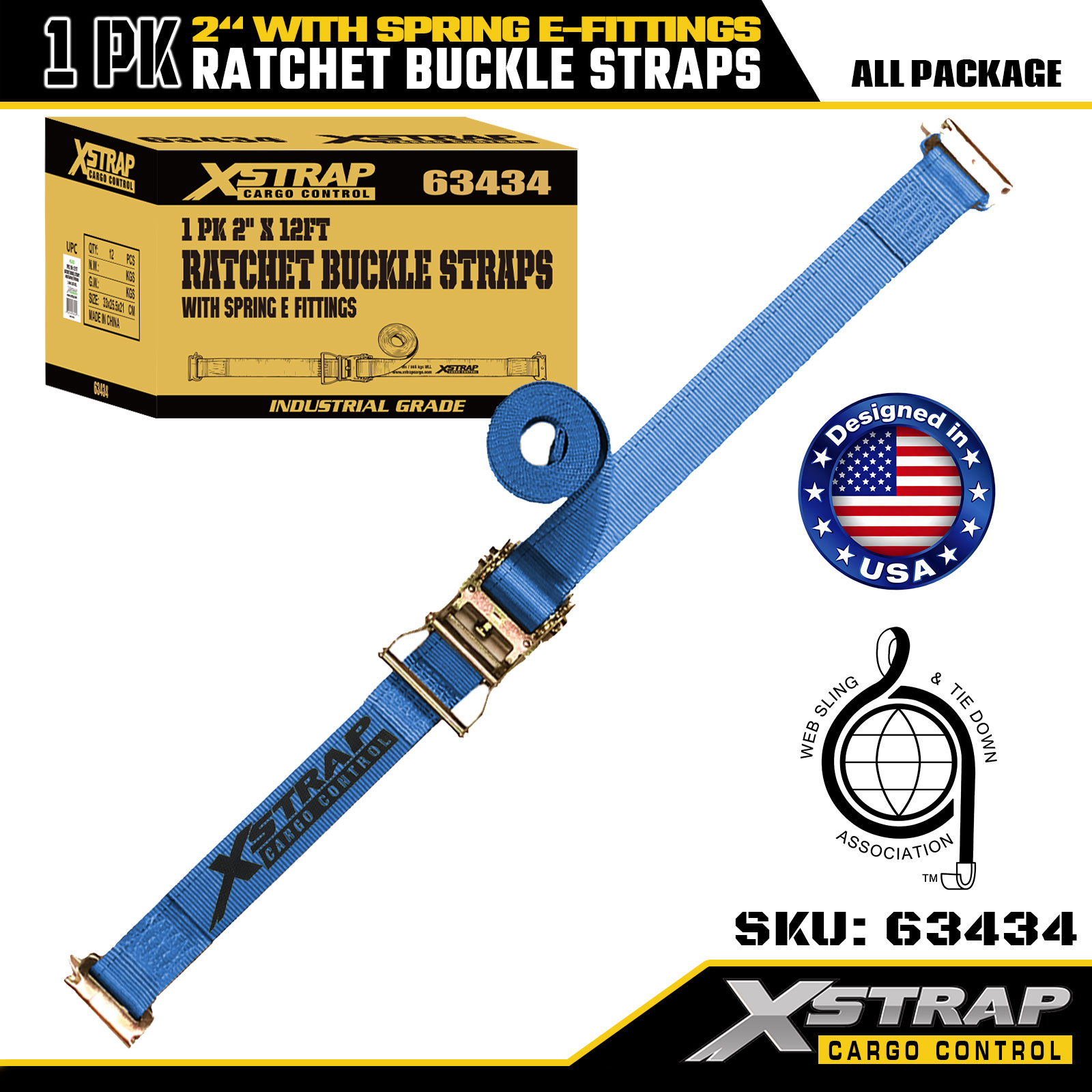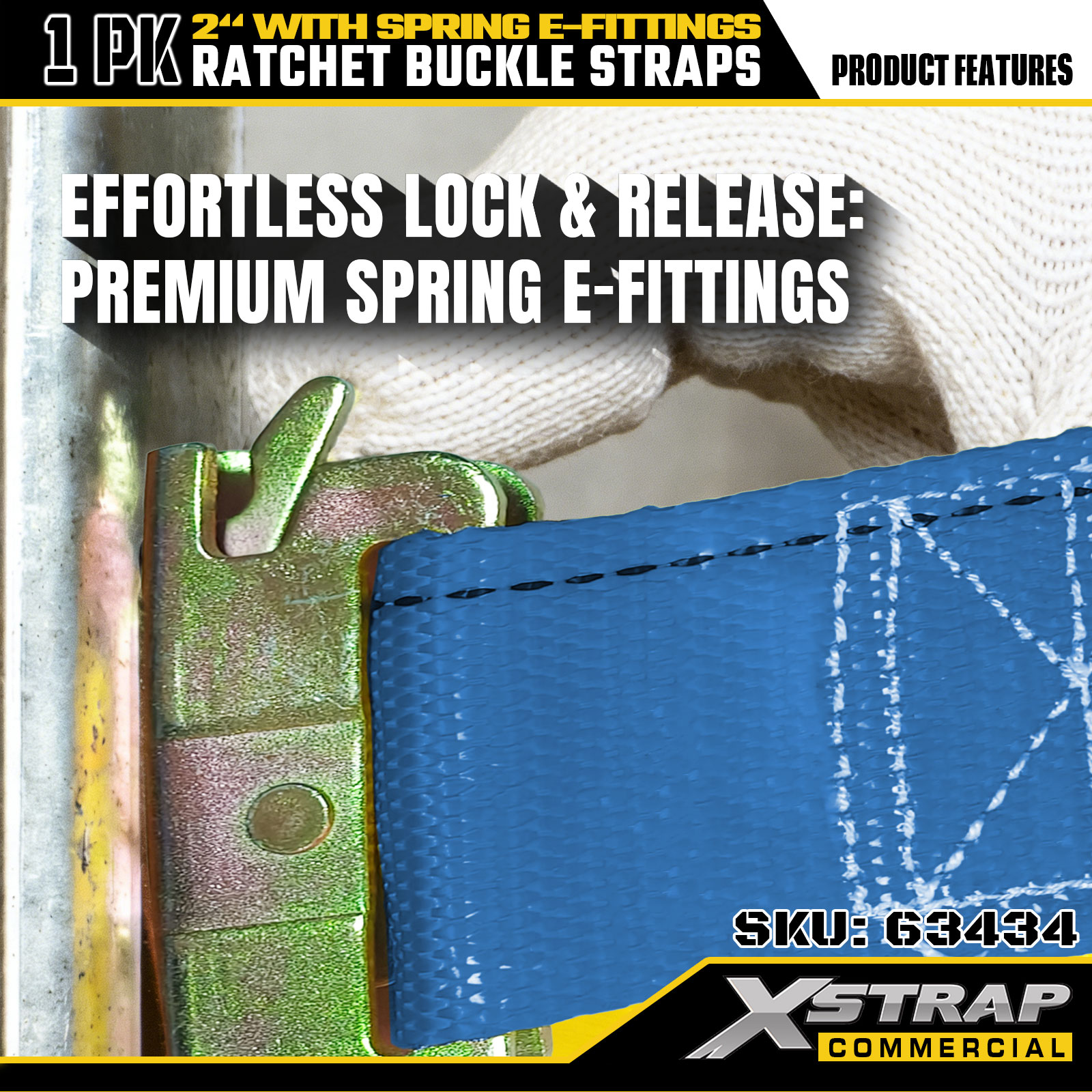 Xstrap 1 Packung Ratschen-Spanngurte, 2" x 20' Polyester-Ladungssicherungsgurte, 1467 lbs sichere Arbeitslast und 4401 lbs Bruchfestigkeit, mit Feder-E-Anschlüssen für LKW, Rasenmäher, Geländefahrzeuge