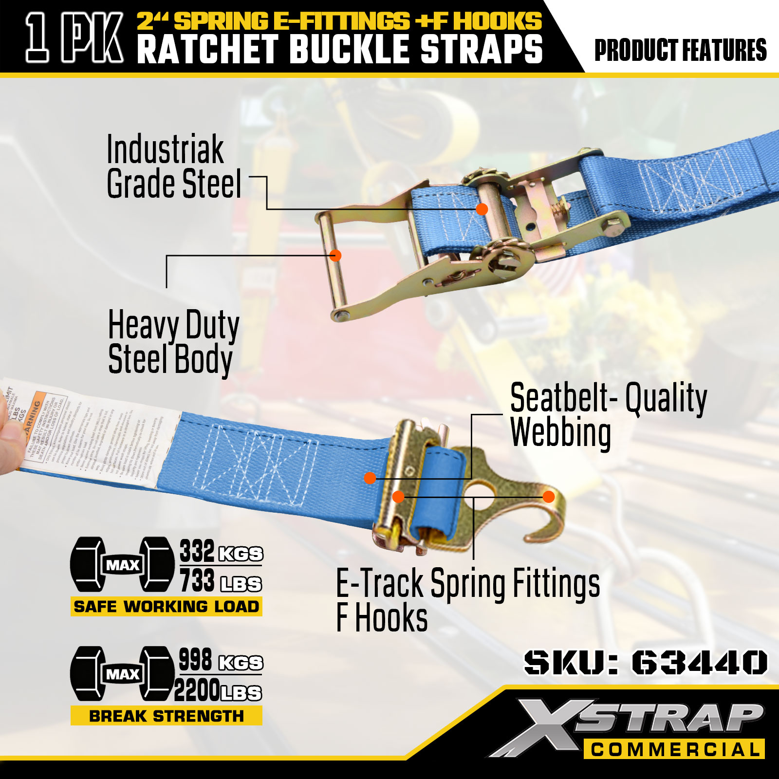 - Robuste, kratzfeste Hardware – robuste Ratschenschnalle aus Metall und korrosionsbeständige F-Haken (glatte Oberfläche) verhindern Oberflächenschäden. Federbelastete E-Anschlüsse sorgen für einen sicheren E-Track-Eingriff.