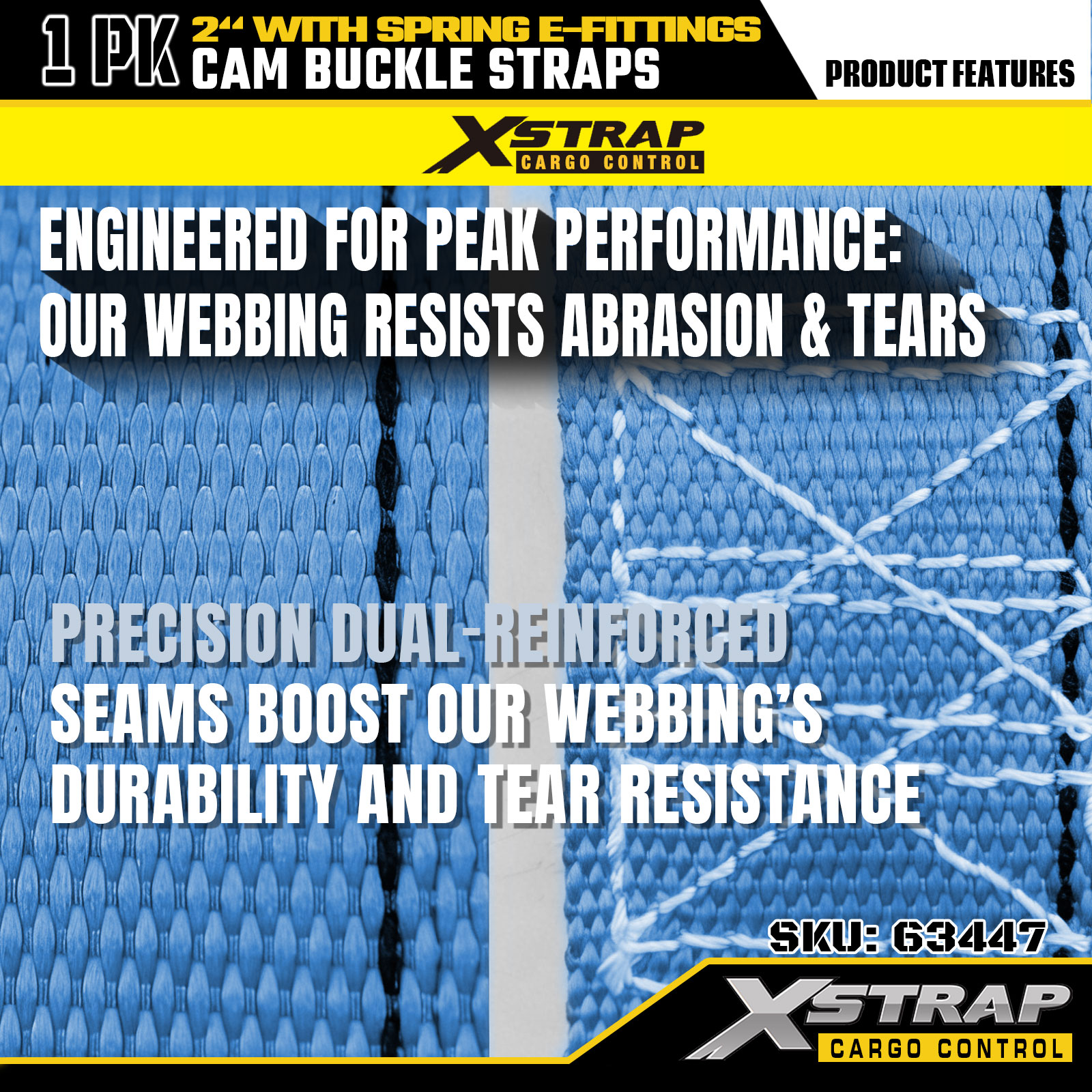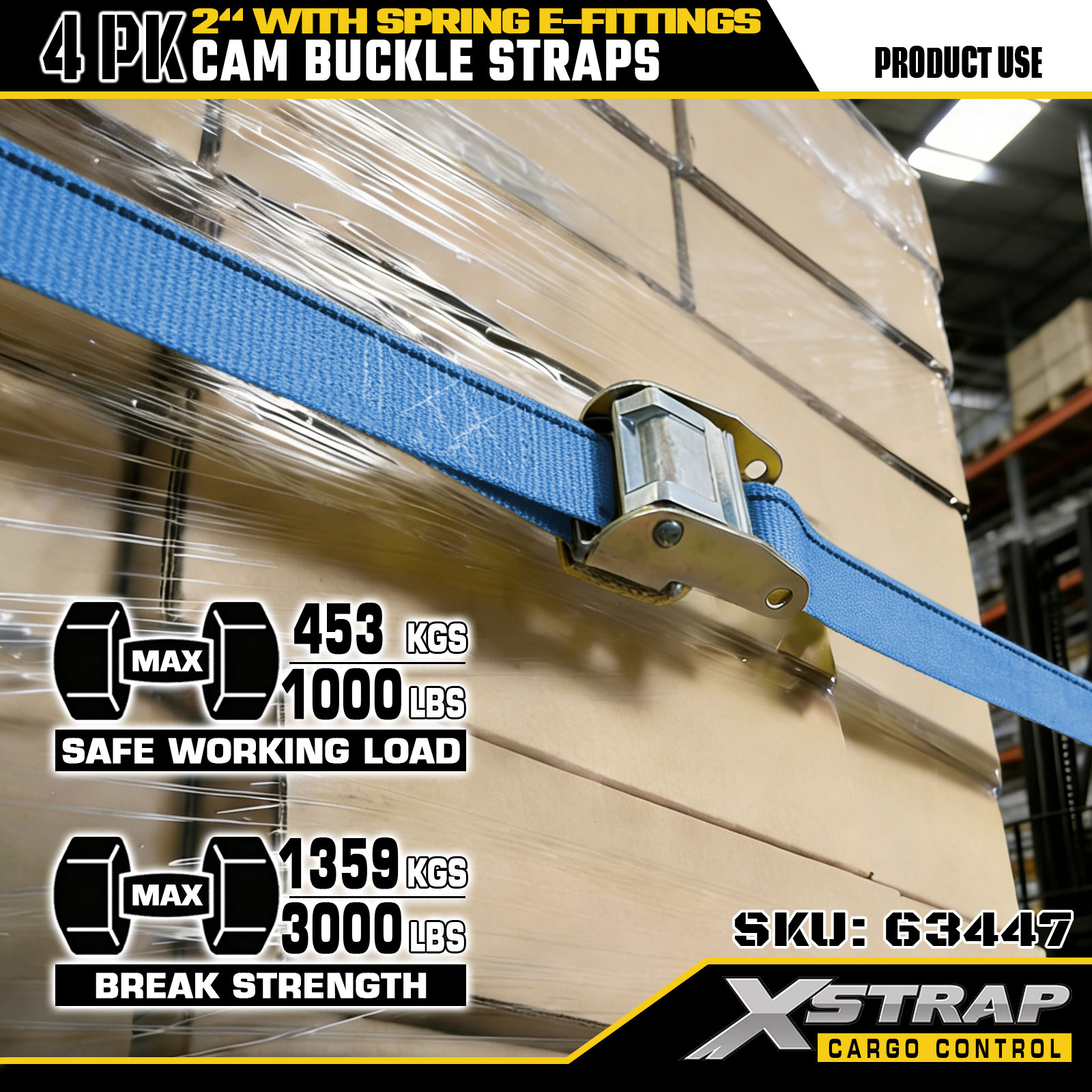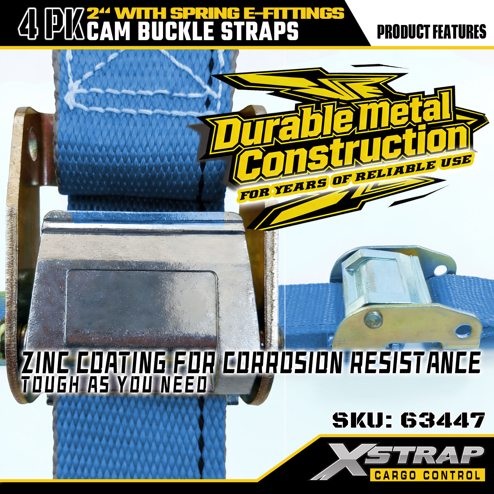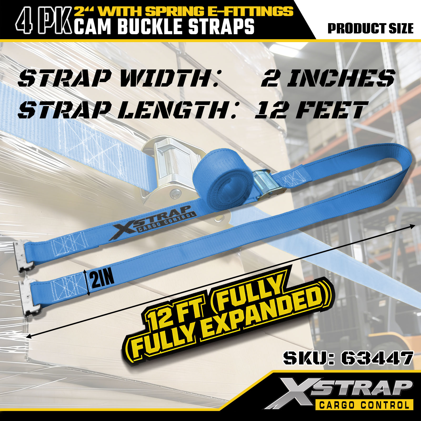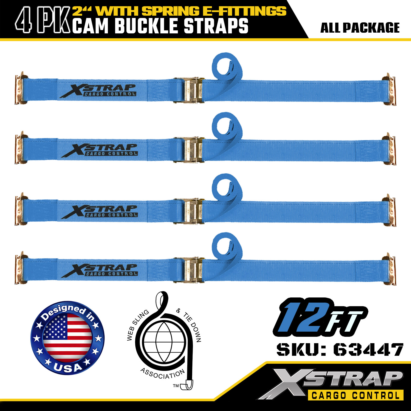 Xstrap 63447 4er-Pack 2" x 12' blaue Ratschengurte mit Feder-E-Anschlüssen und F-Haken, 733 lbs SWL und 332 lbs Bruchfestigkeit für Ladungskontrolle, Bewegung und Transport