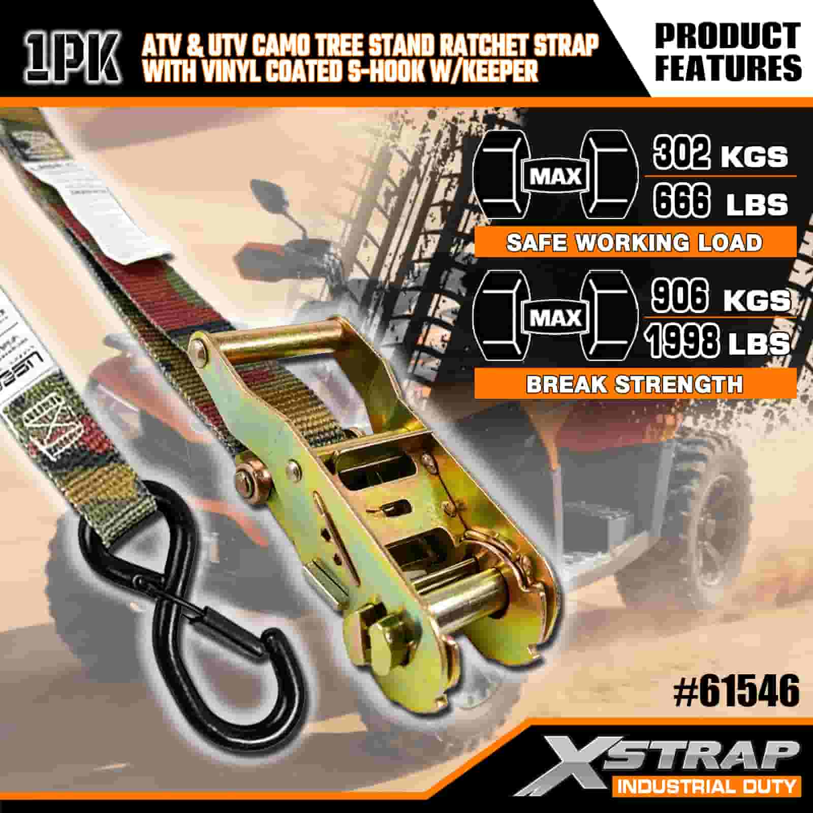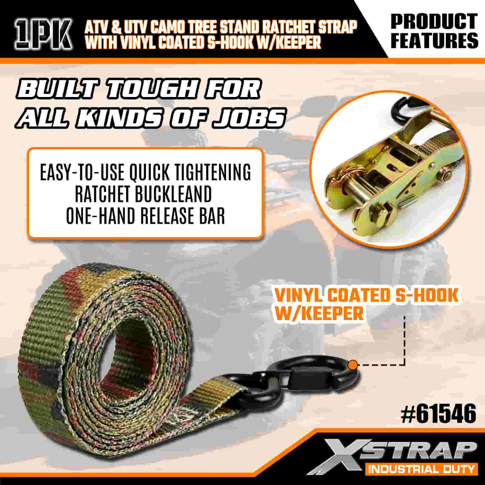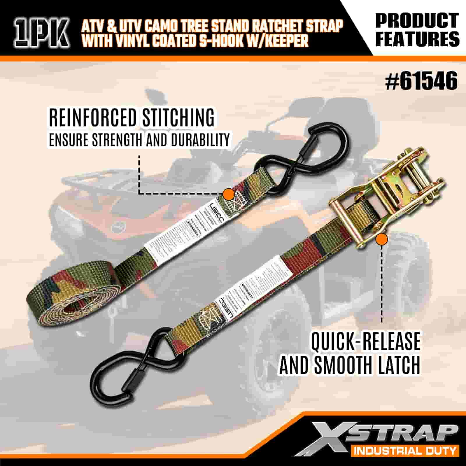 - Einpassen, einrasten: Durch das Tarndesign passt sich der Gurt der Außenumgebung an, während die verstärkten Nähte und die robuste Ratsche dafür sorgen, dass Ihr ATV, Ihr Baumständer oder Ihr Motorrad fest verschlossen bleibt. Machen Sie sich keine Sorgen mehr über das Verschieben von Lasten in unebenem Gelände.