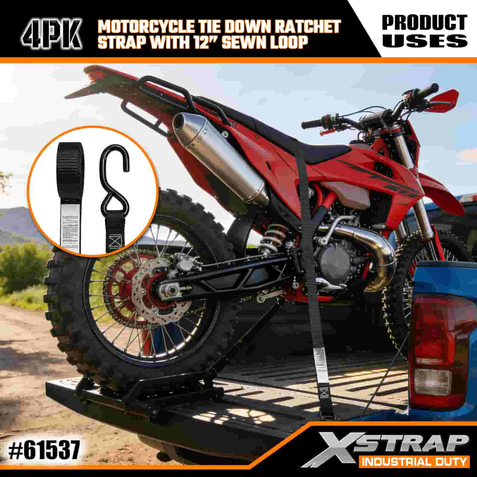 - 4er-Pack 6-Fuß-Gurte zum Festzurren von Motorrädern: Verkauft als Set mit 4 Gurten (1 Zoll breit × 6 Fuß lang), ideal zum Sichern von Motorrädern, Geländefahrzeugen und kleiner Ausrüstung auf LKW-Ladeflächen oder beim Transport.