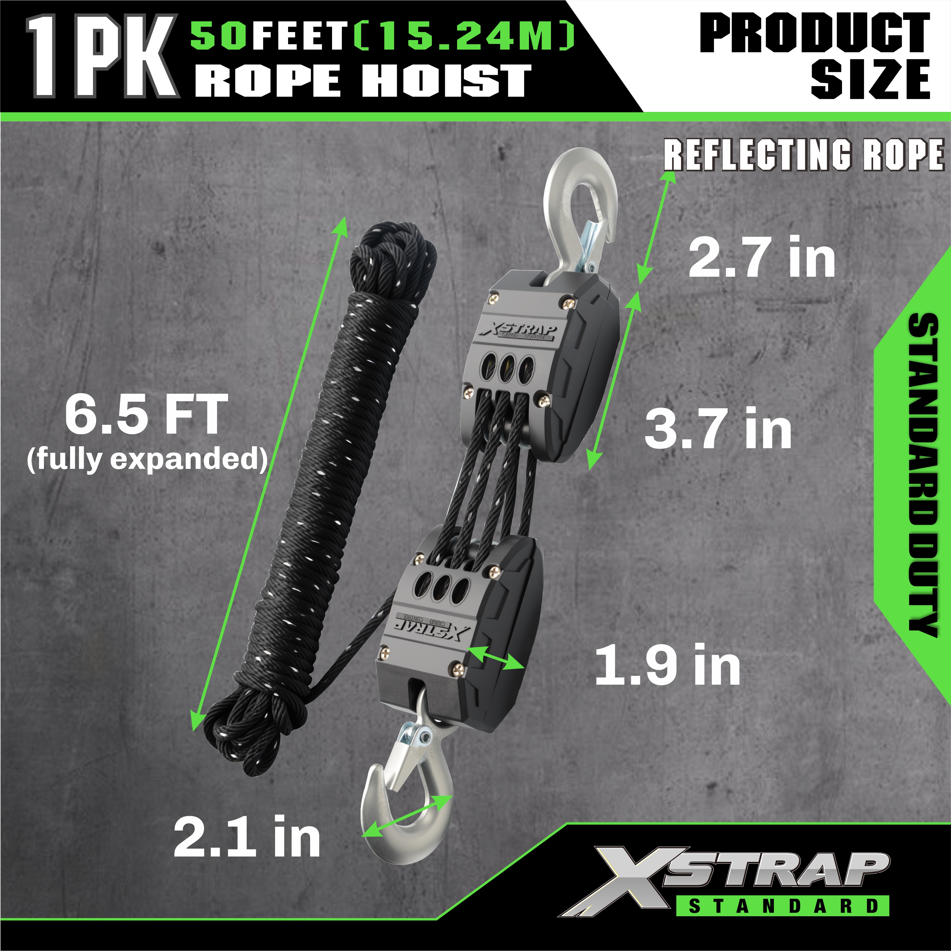 XSTRAP AHLT0003-reflektierendes schwarzes Seilzug-Rollensystem 1000LB