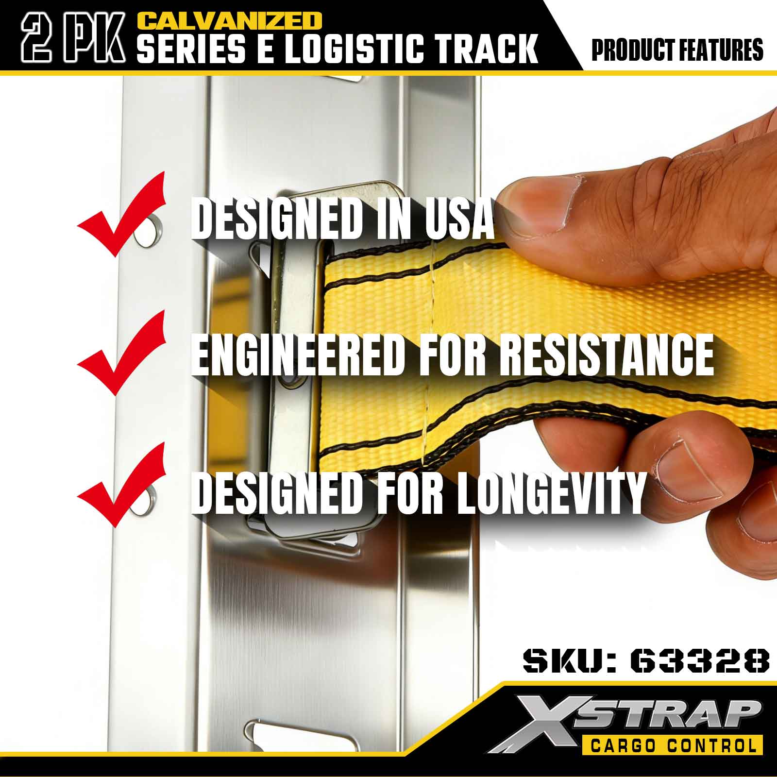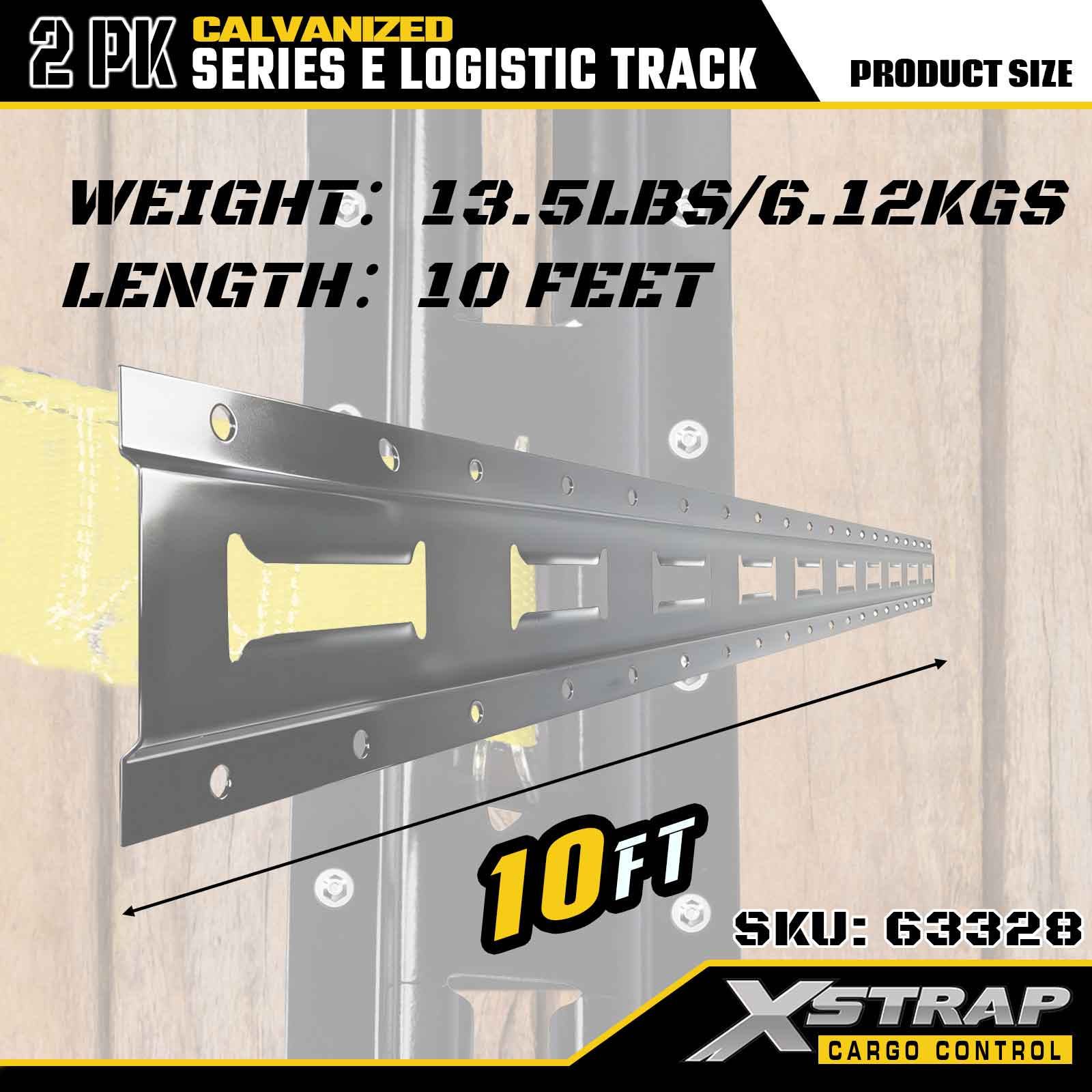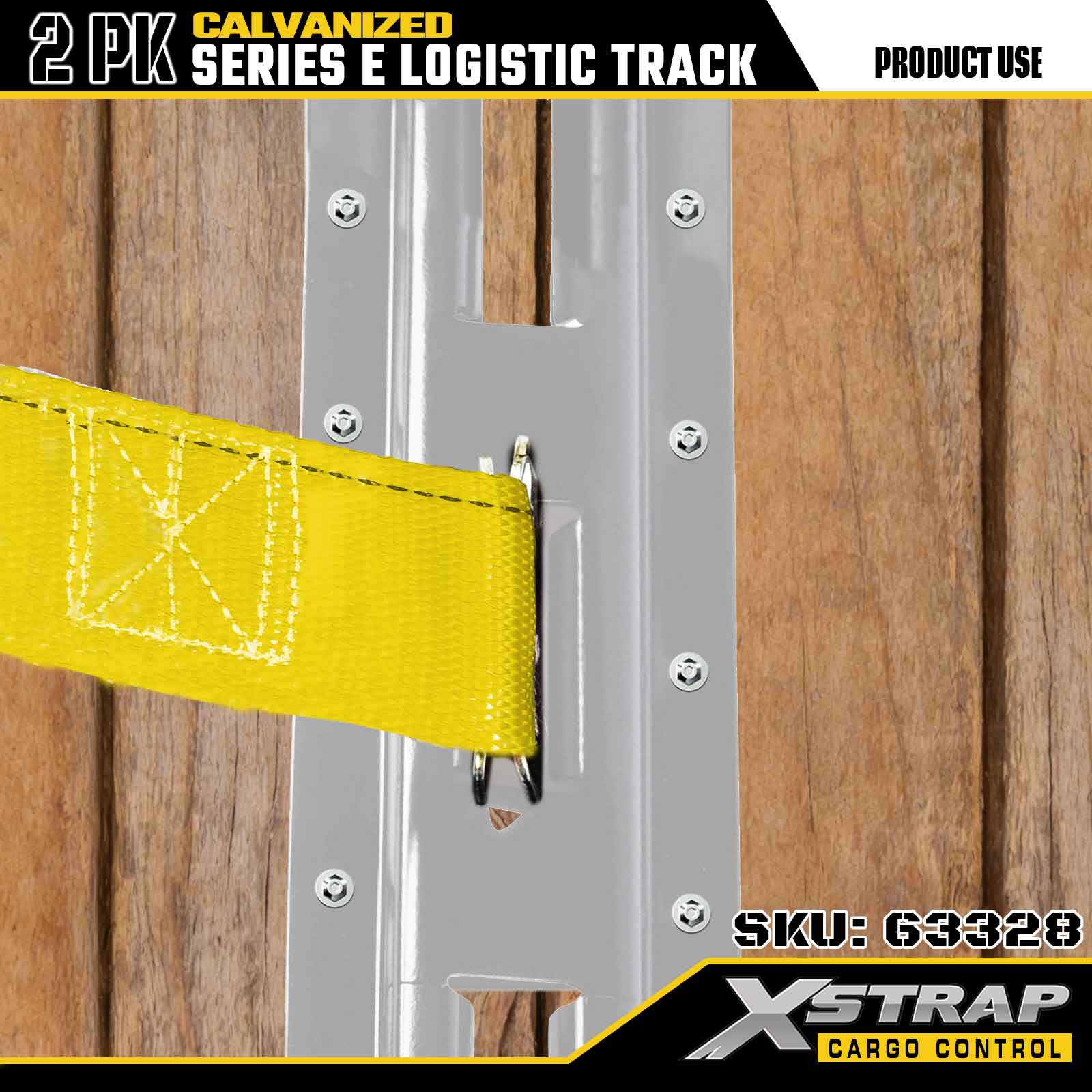 Xstrap 63328 10 Fuß galvanisierte silberne E-Track-Zurrschiene – 12-Gauge-Stahl mit verzinkter Oberfläche, 6000 lbs Tragfähigkeit, 2er-Pack zur Ladungssicherung
