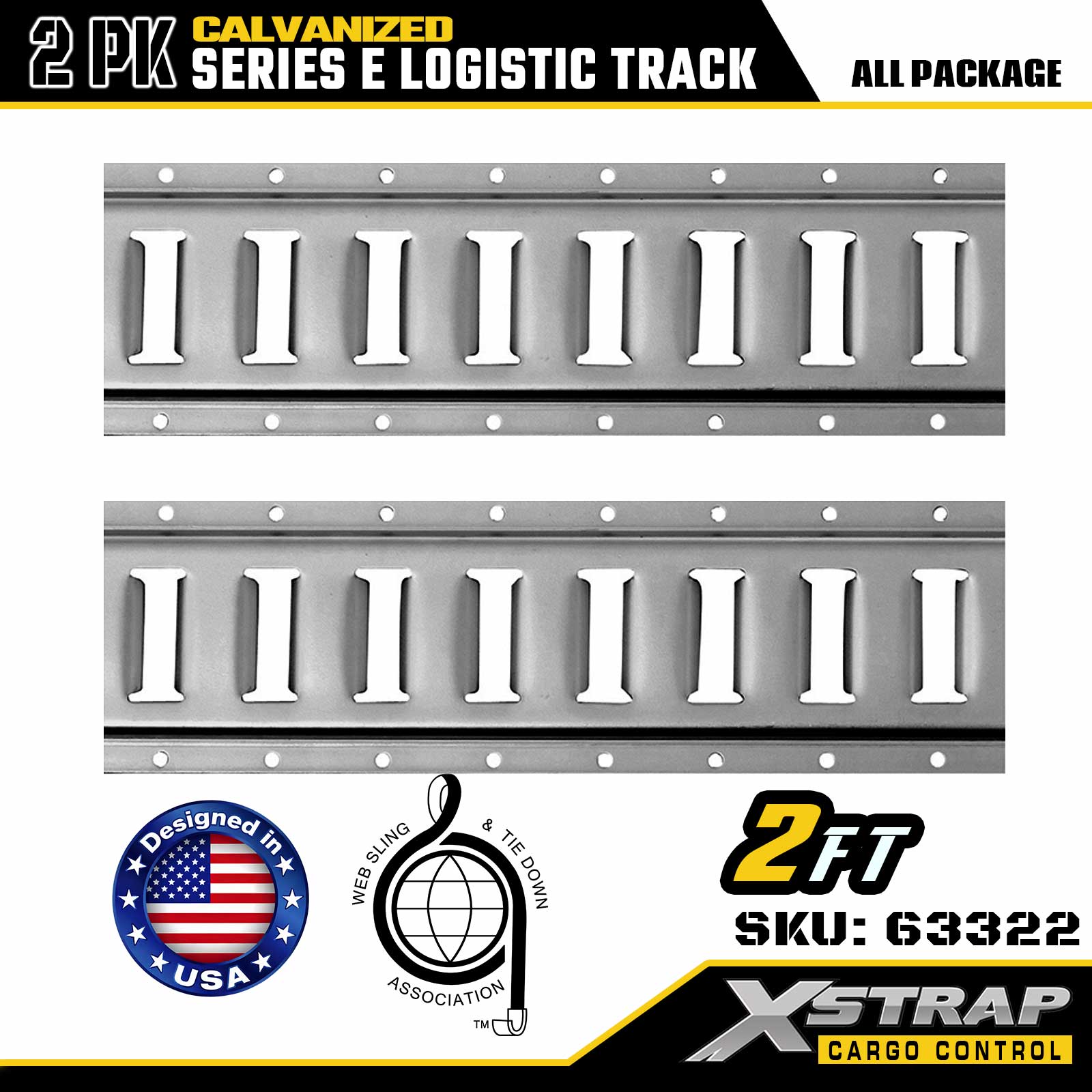 Xstrap 63322 2 Fuß galvanisierte silberne E-Type-Frachtschiene – 12-Gauge-Stahl mit verzinkter Beschichtung, 6000 LBS Tragfähigkeit, 2 Stück für