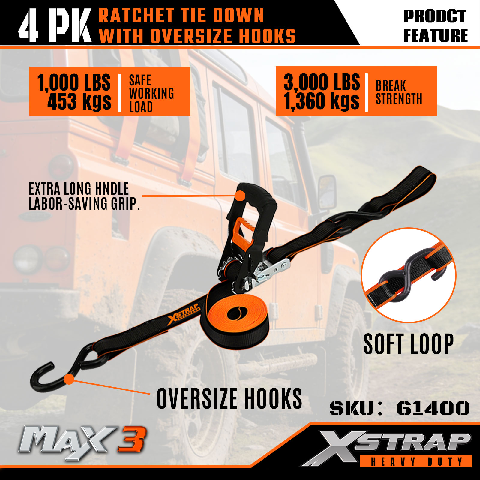 - Arbeitssparender, verlängerter Ratschengriff: Verfügt über einen extra langen, ergonomischen Griff, der den Kraftaufwand beim Spannen reduziert – ideal zum Sichern schwerer Ladung wie UTVs oder Ausrüstung, auch bei Einzelbedienung.