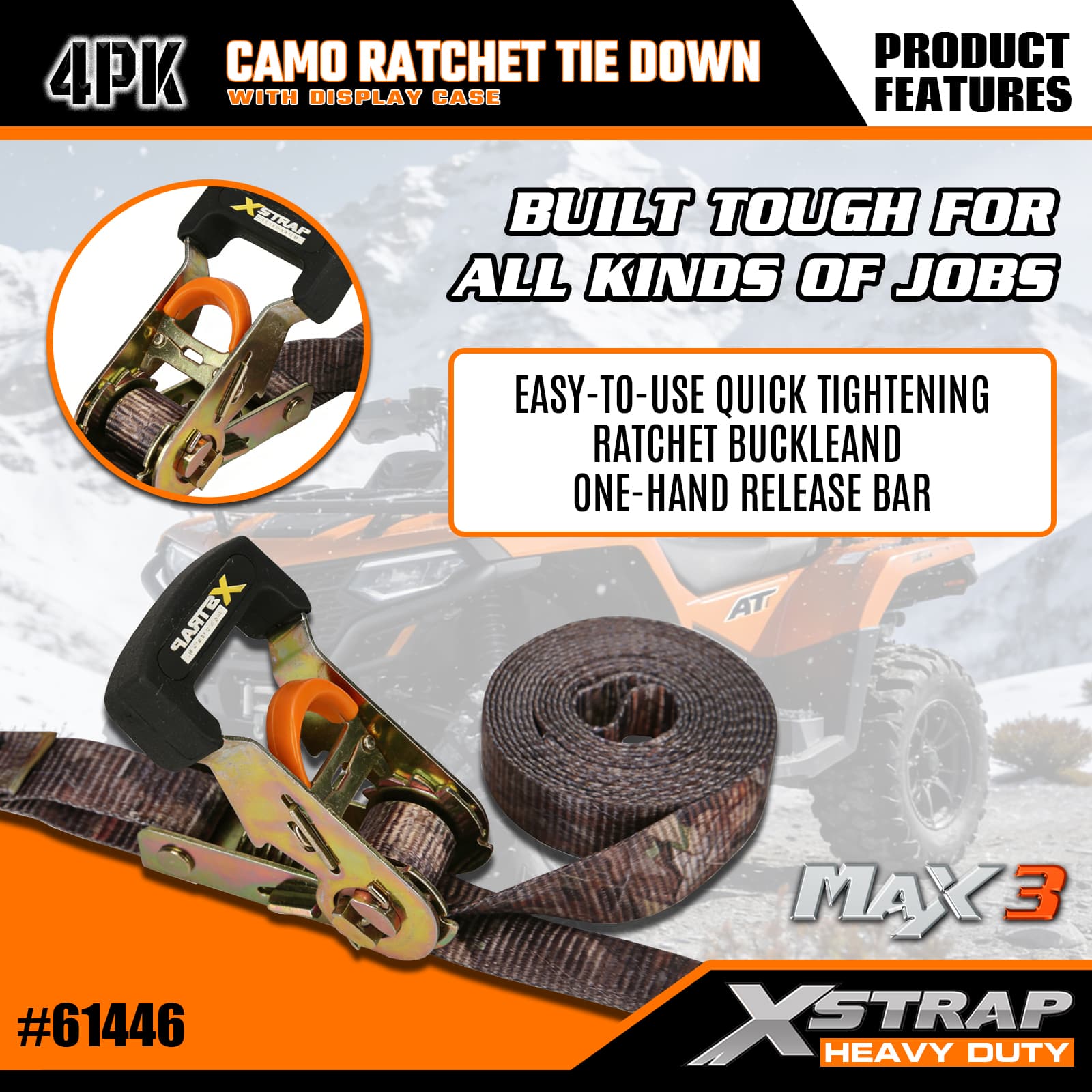 - Ratsche mit Tarnmuster und Einhand-Entriegelung: Verfügt über eine benutzerfreundliche Ratschenschnalle gepaart mit einer Einhand-Entriegelungsstange, die ein schnelles Spannen und müheloses Lösen der Ladung ermöglicht – keine besonderen Kenntnisse erforderlich, für alle Benutzer geeignet.