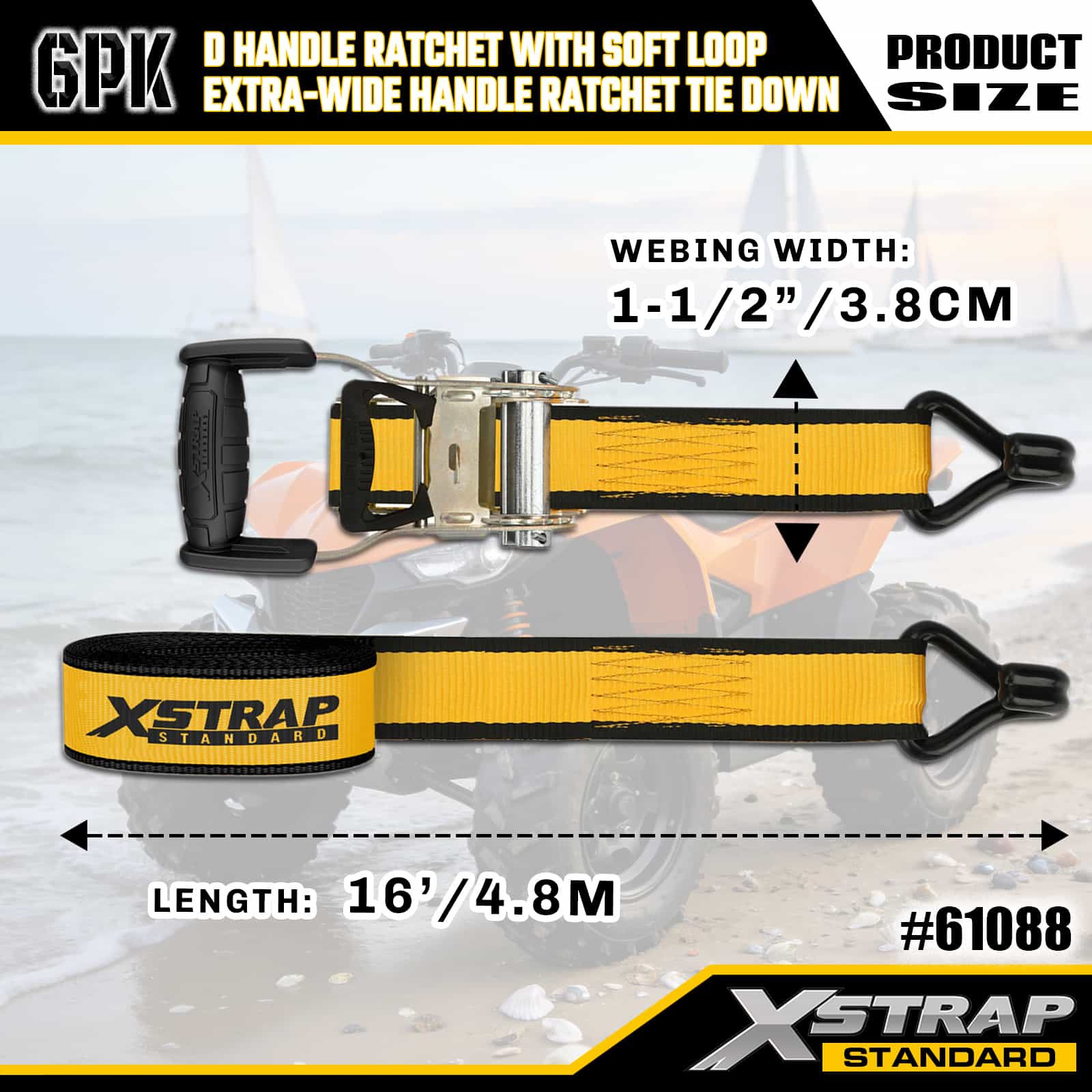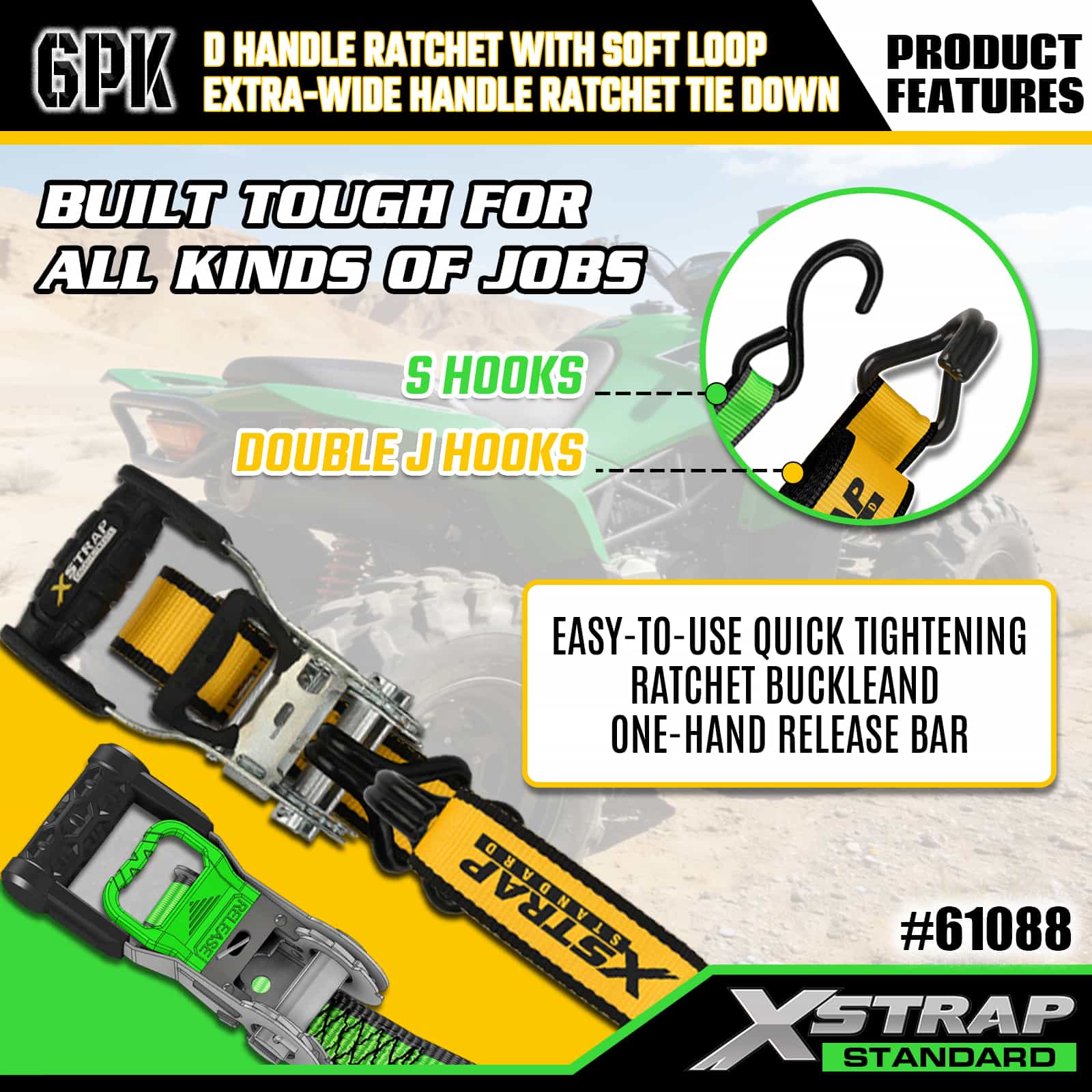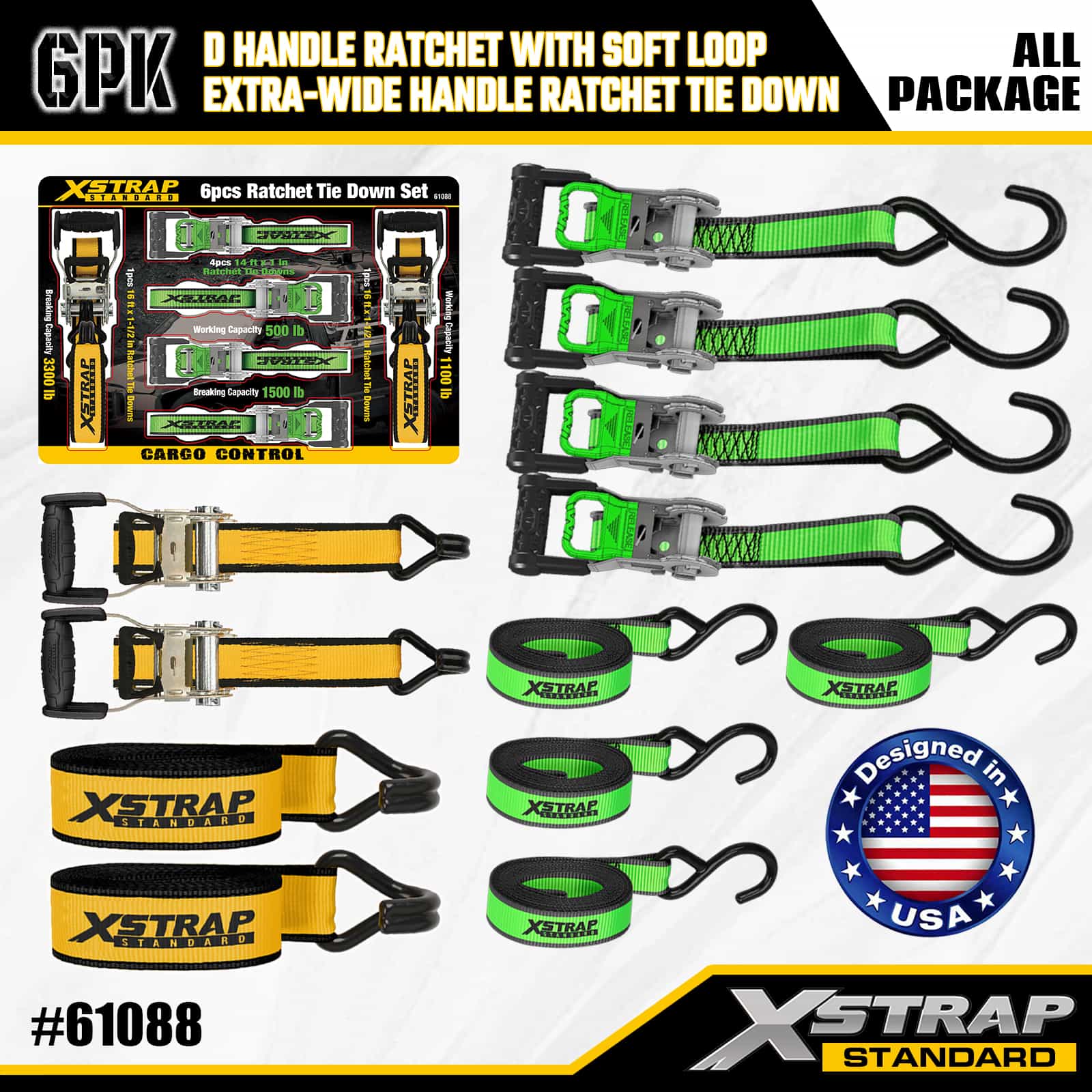 Xstrap 6er-Pack Ratschen-Zurrgurte aus Aluminium, 1" x 14' und 1" x 16', Polyester-Zurrgurt, Ratschengurt, 500 lbs und 1100 lbs Kapazität, Ladungssicherungsgurte mit S-Haken und doppelten J-Haken zur Ladungssicherung bei Pickup-Trucks, SUVs, Auto-Gepäckträgern und Motorrädern.