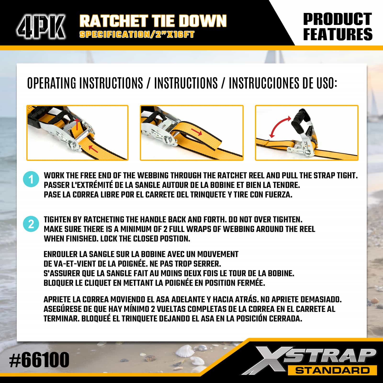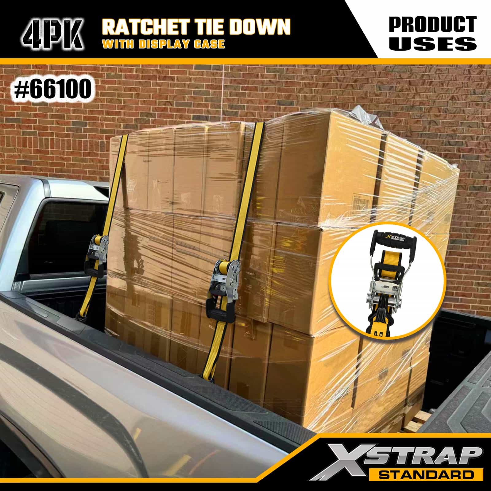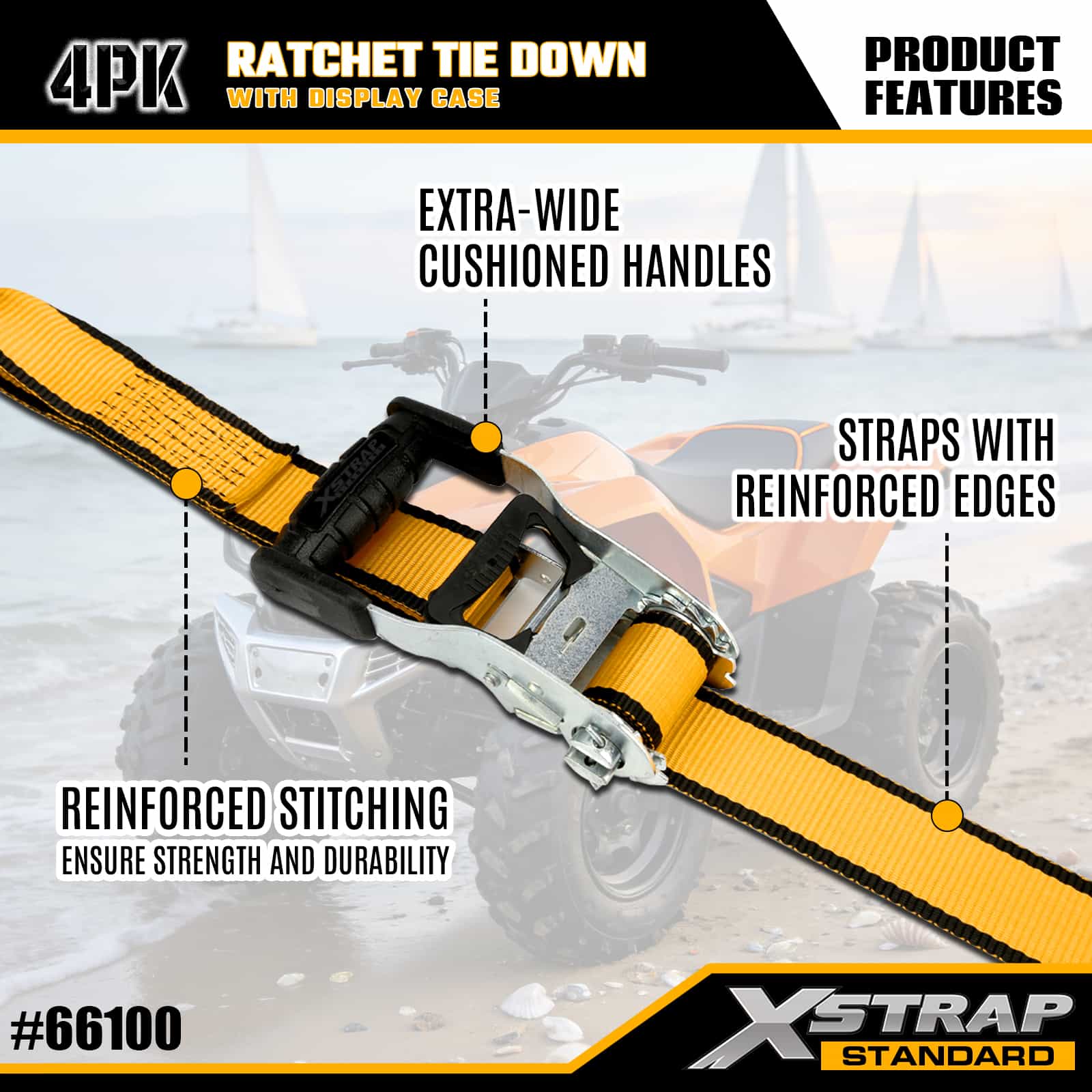 Xstrap 4er-Pack Ratschen-Zurrgurte mit Doppel-J-Haken, 1-1/2 Zoll x 16 Zoll Polyester-Zurrgurt, Zug-Ratschengurt, 1100 Pfund Kapazität, Ladungssicherungsgurte mit Doppel-J-Haken für Pickup-Truck, SUV, Autogepäckträger, Motorrad, leichtes Fischerboot, Jetski, Schneemobil, Rasentraktor.