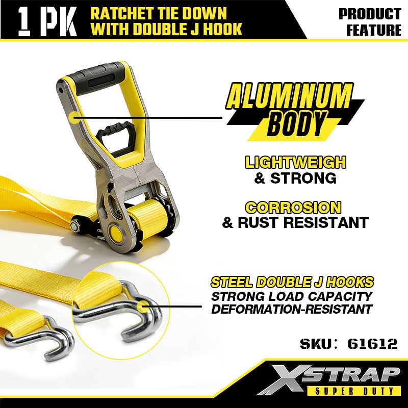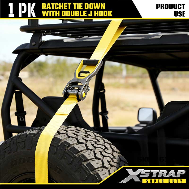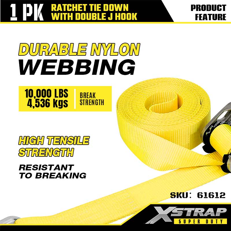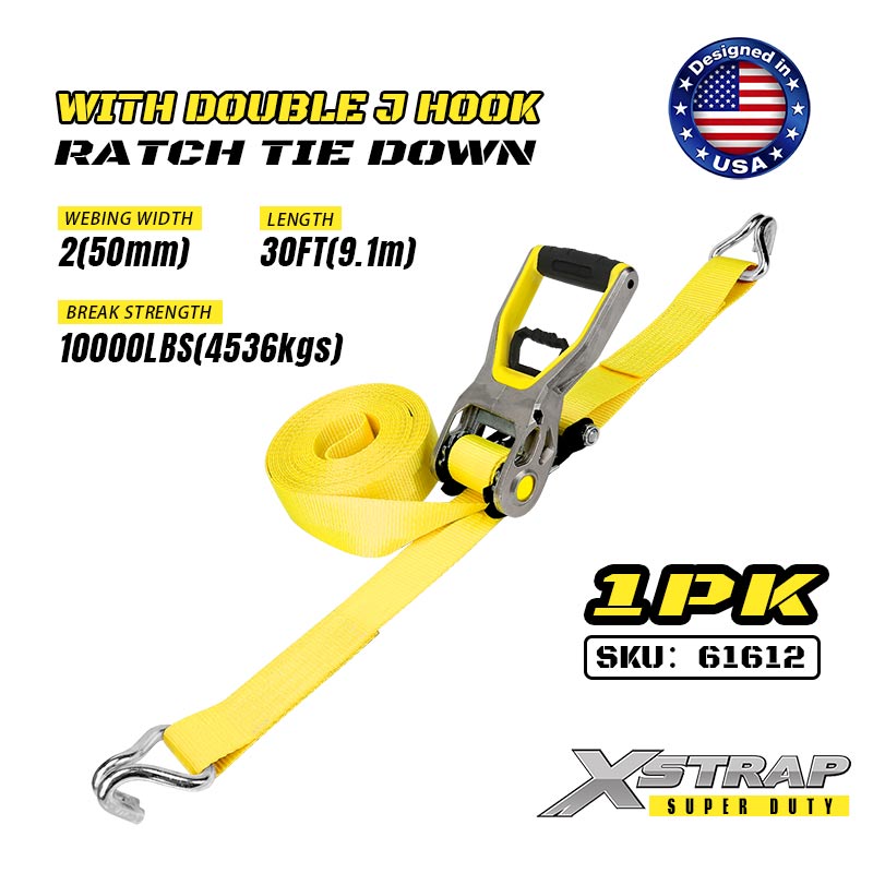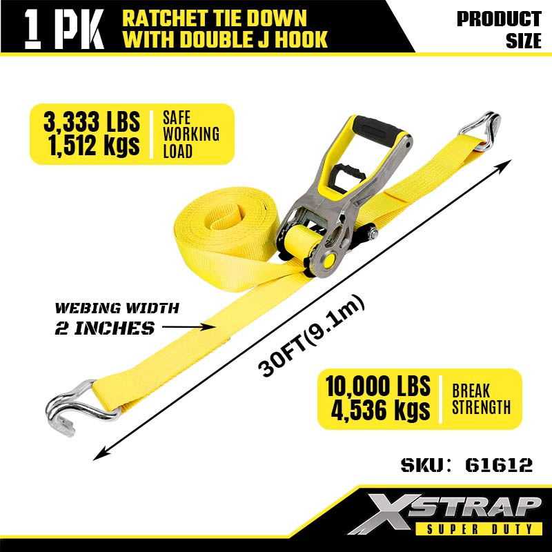 Xstrap Ratcet-Spanngurt mit Doppel-J-Haken, 2 Zoll x 30 Fuß, Ratschengurt aus Polyester, 3333 Pfund Kapazität, Zurrgurte mit Doppel-J-Haken für Schwerlastanhänger, Flachbettanhänger, Skiboot, Kleinwagen, schwere Ausrüstung.