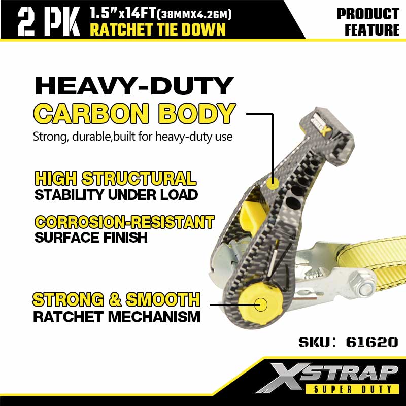 - Reibungsloser Ratschenbetrieb aus Kohlefaser: Verzichten Sie auf die klobigen Ratschen aus Metall. Der Körper aus Kohlefaser ist stabil und dennoch leicht, und mit dem leichtgängigen Mechanismus können Sie schwere Lasten in Sekundenschnelle mit einer Hand spannen und verriegeln. Selbst Erstanwender können ohne zusätzliches Werkzeug einen festen, stabilen Halt erhalten.